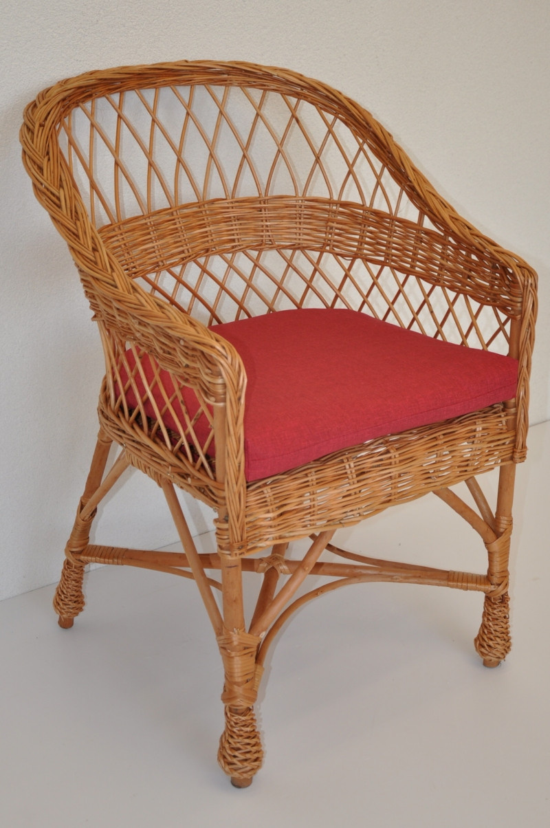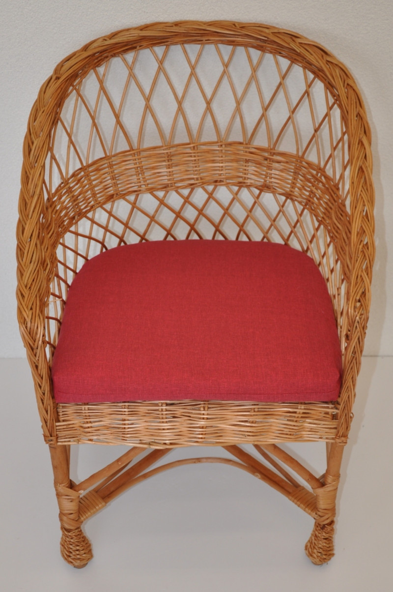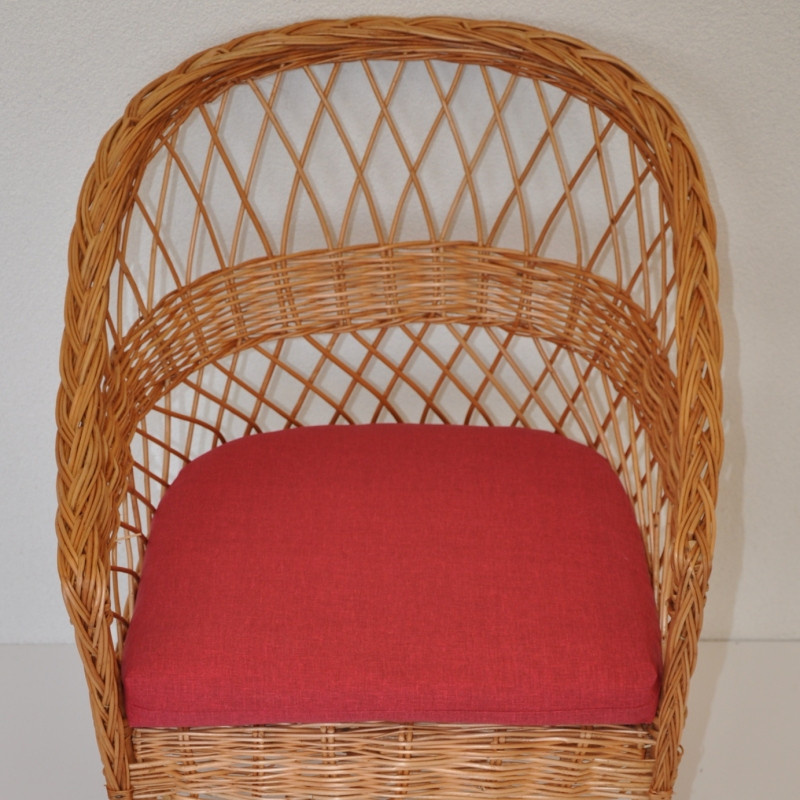 Samostatný polstr na křesla z vrbového proutí. | Polstr je vhodný na křesla, která jsou vyráběna z vrbového proutí v Polsku. Křesla z vrbového proutí se povětšinou liší ve tvaru a rozmanitosti výpletu, ale velikost sedací části je v mnoha případech stejná, a je možné použít námi prodávaný polstr. Velikost polstru je: šíře 46 cm, hloubka 45 cm. Polstr je plněný dutým polyeterovým vláknem. Polstr je opatřen tkanicemi ve stejné barvě látky pro snadné uchycení ke konstrukci křesla.