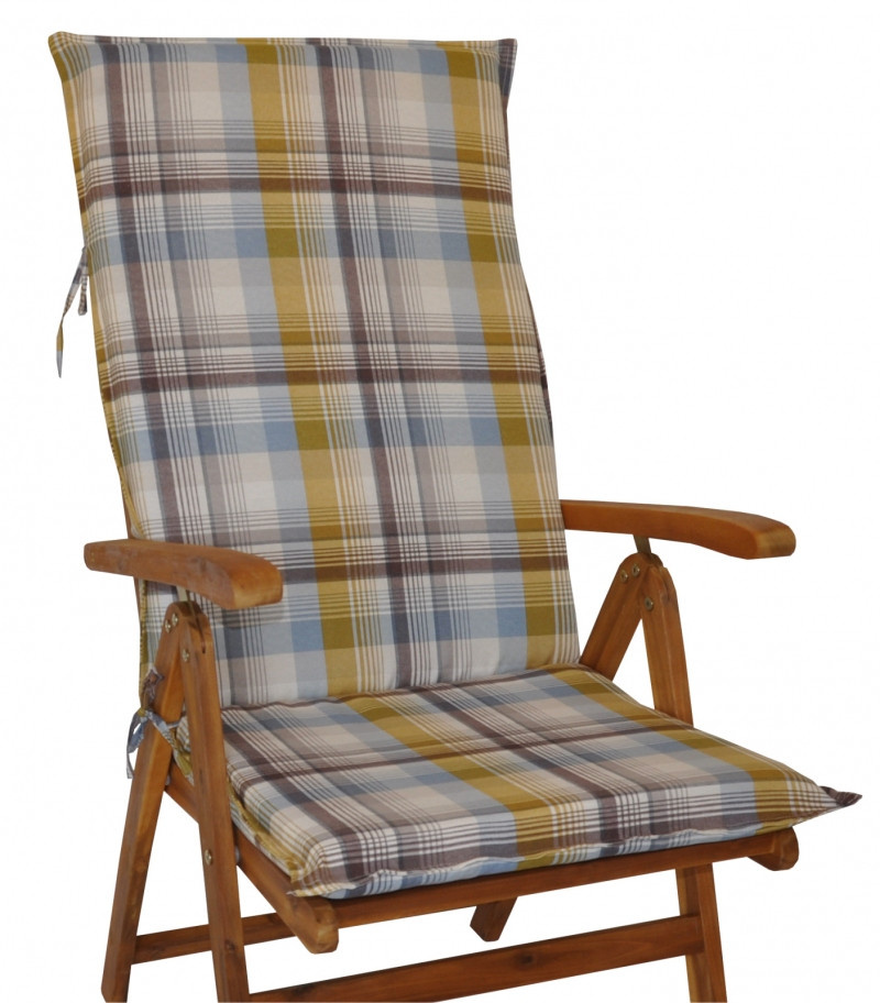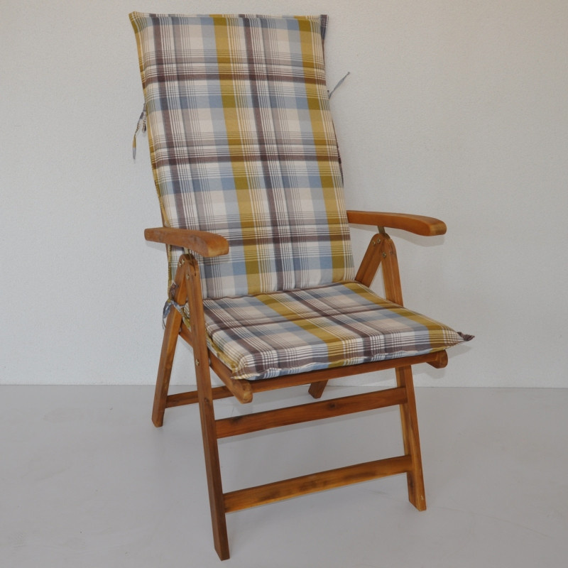 Samostatný polstr na teakové zahradní křeslo s vysokým opěradlem a stavitelnou polohou opěradla. | Univerzální polstr na zahradní křeslo s vysokým opěradlem. Polstr je vhodný na různá zahradní křesla prodávaná na našem trhu. Šířka polstru je 50 cm. Celková délka polstru je 120 cm. Polstr je prošitý v místě dělení na sedací a opěradlovou část. Hloubka sedací části je 47 cm a výška opěradlové části je 73 cm. Tloušťka polstru je 5 cm. Polstr je plněný polyesterovým rounem. Pro výrobu polstru je použita kvalitní látka a standardem je vysoká kvalita zpracování. Polstr je vyrobený je v České republice z kvalitní látky a vyznačuje se vysokou kvalitou zpracování.