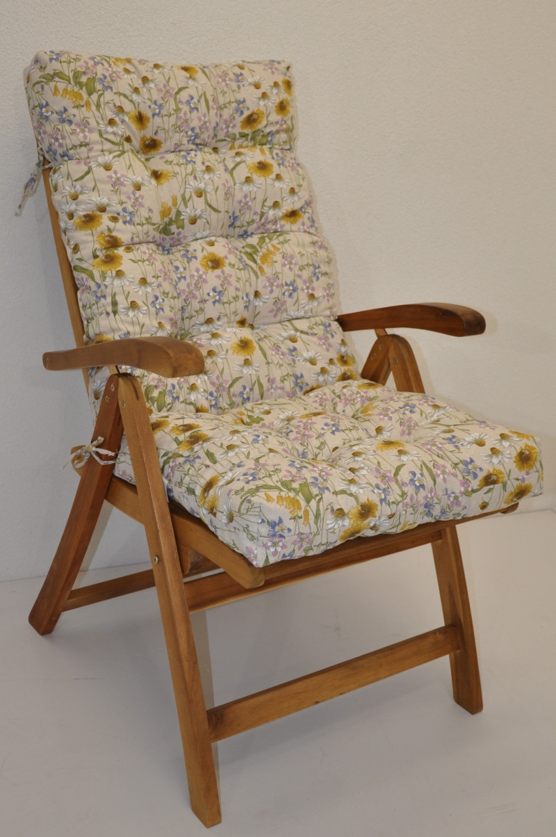 Polstr na teakové zahradní křeslo vysoké - látka motiv luční kvítí