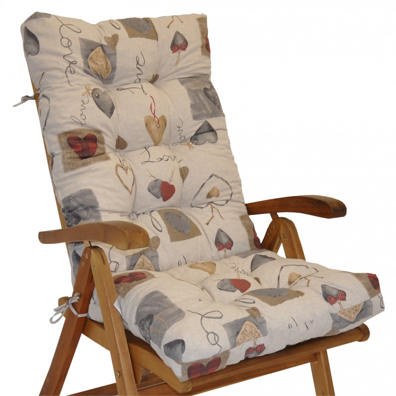 Polstr na teakové zahradní křeslo vysoké - látka motiv srdce LOVE