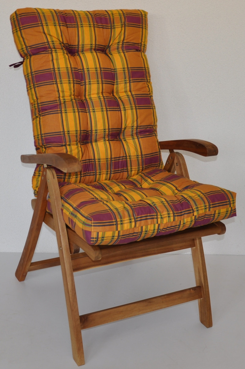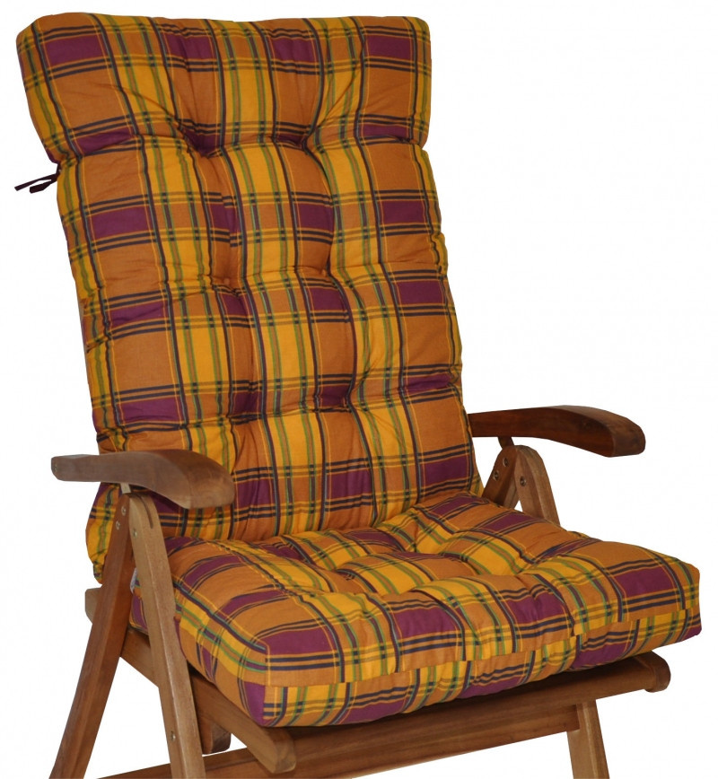 Polstr na teakové zahradní křeslo vysoké - látka okrová kostka