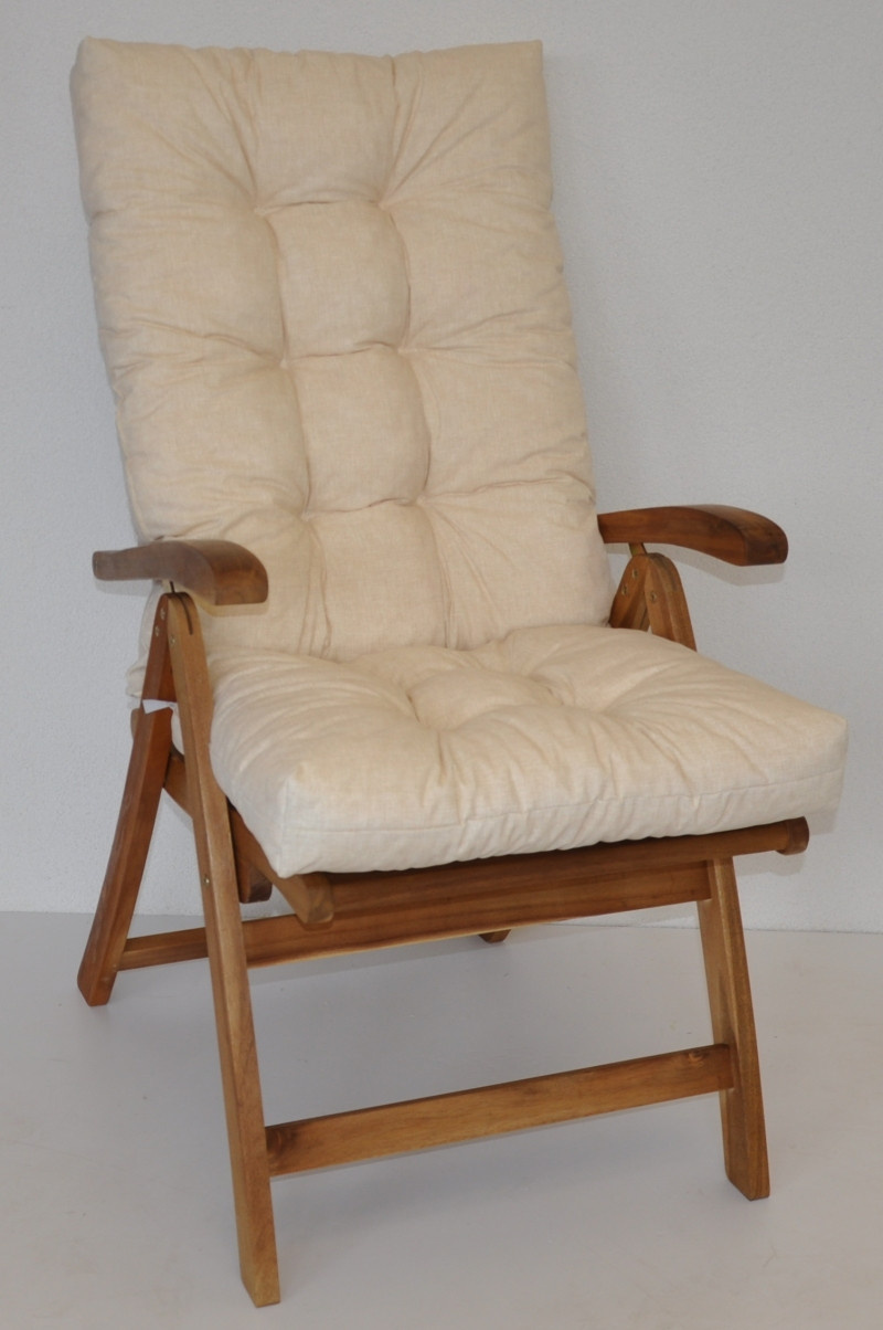 Samostatný polstr na teakové zahradní křeslo s vysokým opěradlem a stavitelnou polohou opěradla. | Univerzální polstr na zahradní křeslo s vysokým opěradlem. Polstr je vhodný na různá zahradní křesla prodávaná na našem trhu. Šířka polstru je 50 cm. Celková délka polstru je 120 cm. Polstr je prošitý v místě dělení na sedací a opěradlovou část. Hloubka sedací části je 47 cm a výška opěradlové části je 73 cm. Polstr je plněný drceným molitanem. Pro výrobu polstru je použita kvalitní látka a standardem je vysoká kvalita zpracování. Polstr je vyrobený je v České republice z kvalitní látky a vyznačuje se vysokou kvalitou zpracování.