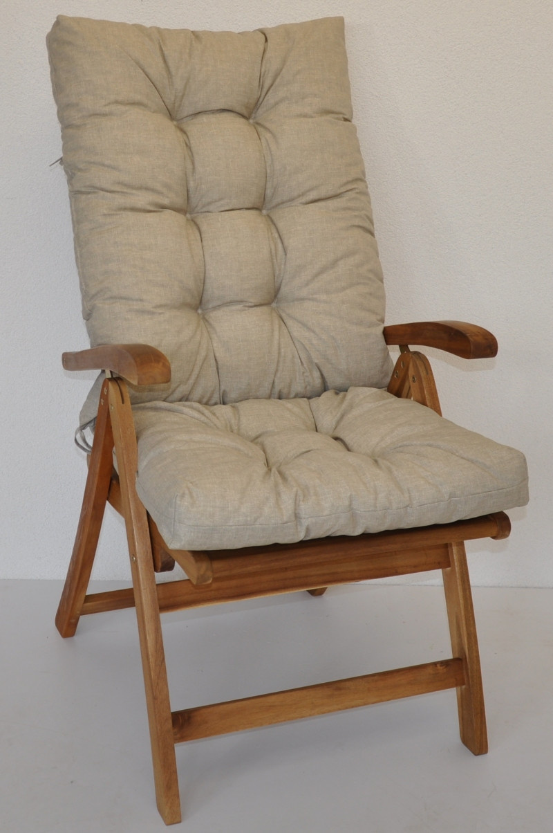 Polstr na teakové zahradní křeslo vysoké - látka tmavě béžový melír