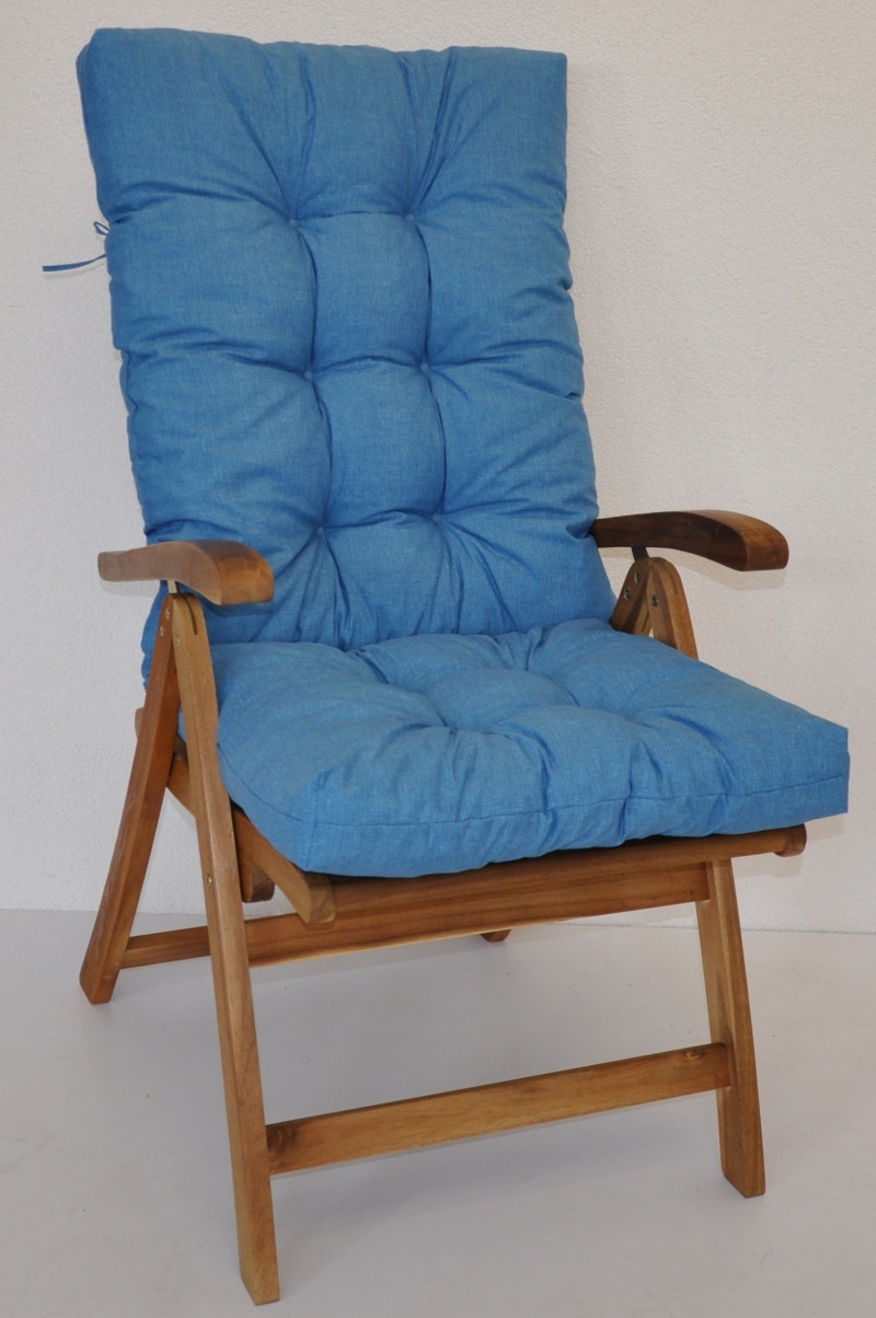 Samostatný polstr na teakové zahradní křeslo s vysokým opěradlem a stavitelnou polohou opěradla. | Univerzální polstr na zahradní křeslo s vysokým opěradlem. Polstr je vhodný na různá zahradní křesla prodávaná na našem trhu. Šířka polstru je 50 cm. Celková délka polstru je 120 cm. Polstr je prošitý v místě dělení na sedací a opěradlovou část. Hloubka sedací části je 47 cm a výška opěradlové části je 73 cm. Polstr je plněný drceným molitanem. Pro výrobu polstru je použita kvalitní látka a standardem je vysoká kvalita zpracování. Polstr je vyrobený je v České republice z kvalitní látky a vyznačuje se vysokou kvalitou zpracování.