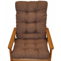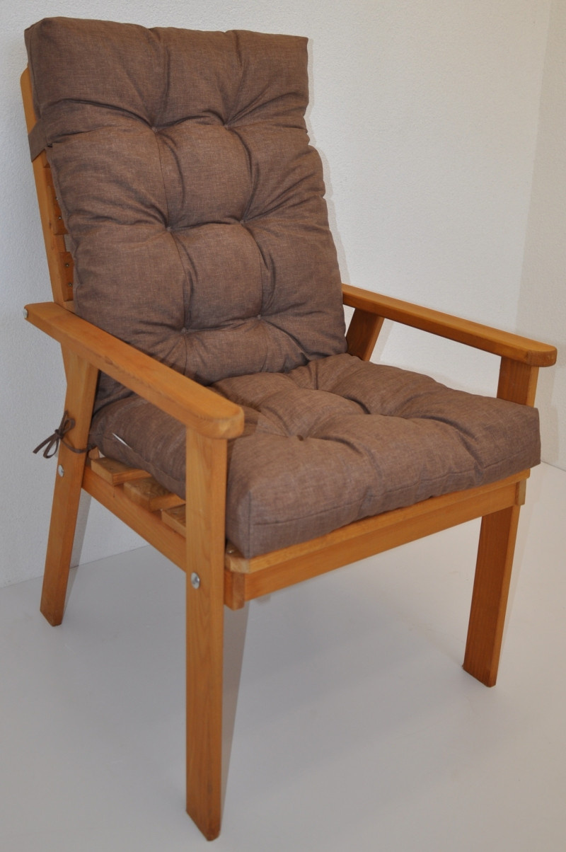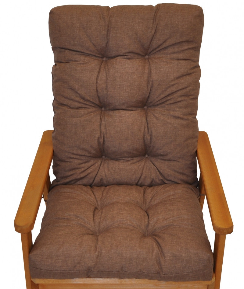 Samostatný polstr na dřevěné zahradní křeslo s vysokým opěradlem. | Univerzální polstr na zahradní křeslo s vysokým opěradlem. Polstr je vhodný na různá zahradní dřevěná křesla prodávaná na našem trhu. Šířka polstru je 50 cm. Celková délka polstru je 115 cm. Polstr je prošitý v místě dělení na sedací a opěradlovou část. Hloubka sedací části je 47 cm a výška opěradlové části je 68 cm. Polstr je plněný drceným molitanem. Pro výrobu polstru je použita kvalitní látka a standardem je vysoká kvalita zpracování. Polstr je vyrobený je v České republice z kvalitní látky a vyznačuje se vysokou kvalitou zpracování.