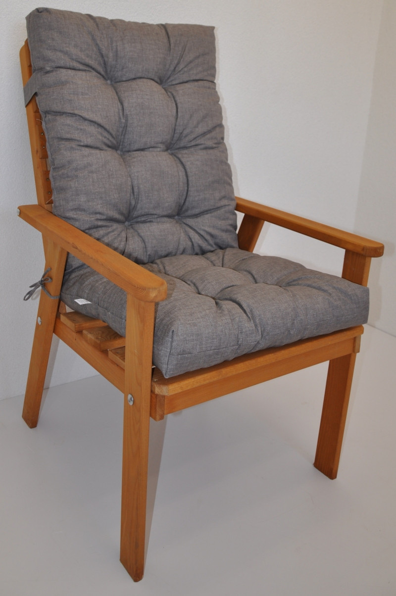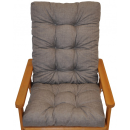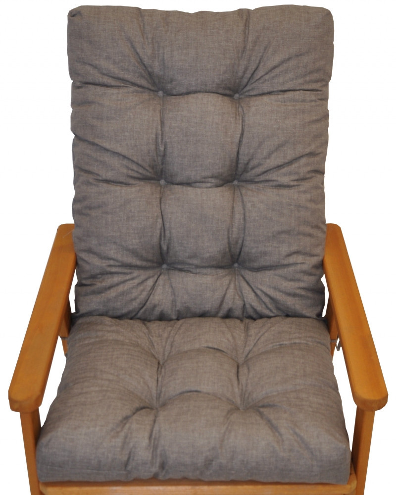 Samostatný polstr na dřevěné zahradní křeslo s vysokým opěradlem. | Univerzální polstr na zahradní křeslo s vysokým opěradlem. Polstr je vhodný na různá zahradní dřevěná křesla prodávaná na našem trhu. Šířka polstru je 50 cm. Celková délka polstru je 115 cm. Polstr je prošitý v místě dělení na sedací a opěradlovou část. Hloubka sedací části je 47 cm a výška opěradlové části je 68 cm. Polstr je plněný drceným molitanem. Pro výrobu polstru je použita kvalitní látka a standardem je vysoká kvalita zpracování. Polstr je vyrobený je v České republice z kvalitní látky a vyznačuje se vysokou kvalitou zpracování.