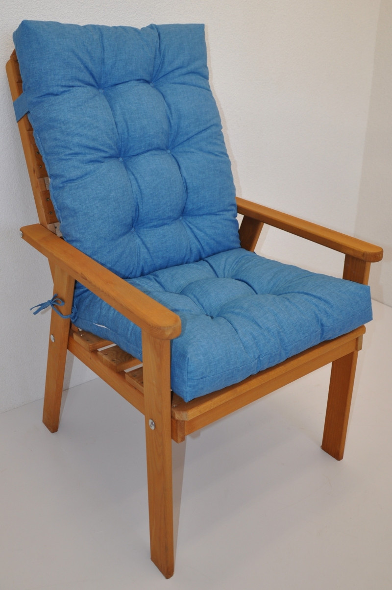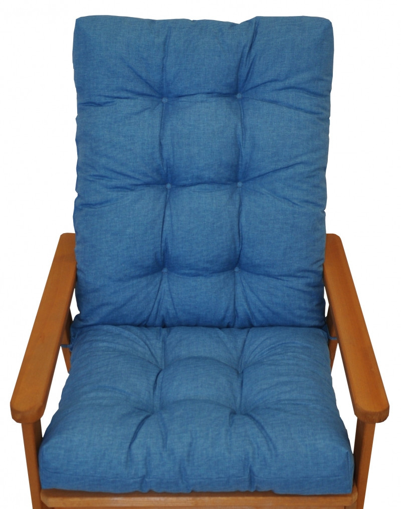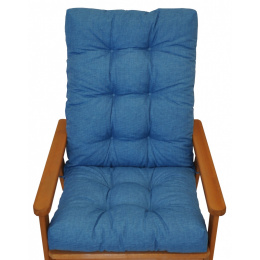 Samostatný polstr na dřevěné zahradní křeslo s vysokým opěradlem. | Univerzální polstr na zahradní křeslo s vysokým opěradlem. Polstr je vhodný na různá zahradní dřevěná křesla prodávaná na našem trhu. Šířka polstru je 50 cm. Celková délka polstru je 115 cm. Polstr je prošitý v místě dělení na sedací a opěradlovou část. Hloubka sedací části je 47 cm a výška opěradlové části je 68 cm. Polstr je plněný drceným molitanem. Pro výrobu polstru je použita kvalitní látka a standardem je vysoká kvalita zpracování. Polstr je vyrobený je v České republice z kvalitní látky a vyznačuje se vysokou kvalitou zpracování.