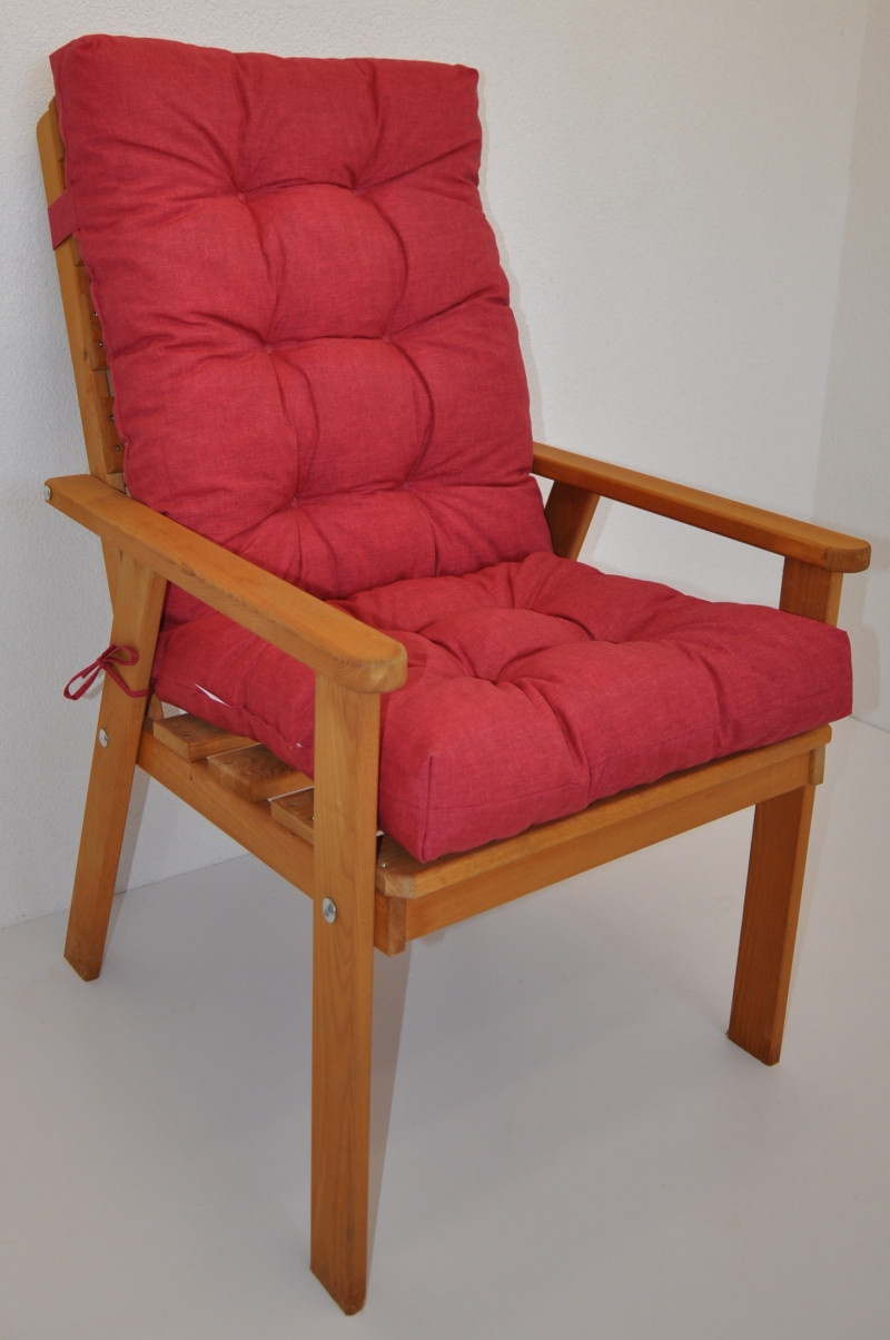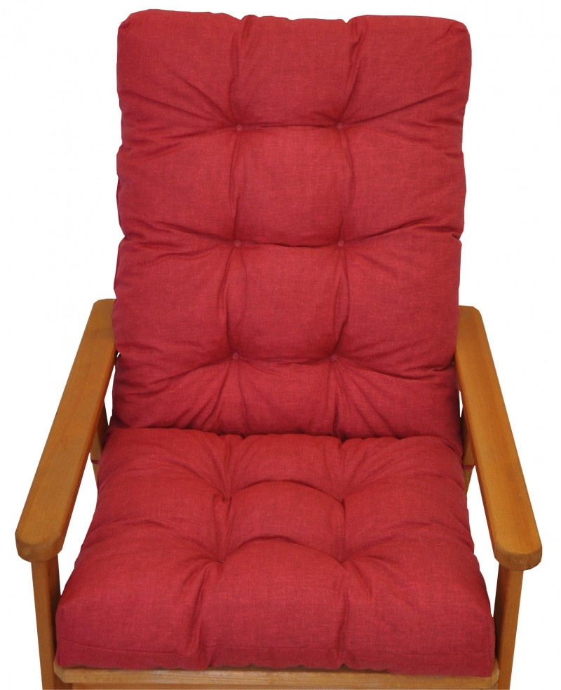 Samostatný polstr na dřevěné zahradní křeslo s vysokým opěradlem. | Univerzální polstr na zahradní křeslo s vysokým opěradlem. Polstr je vhodný na různá zahradní dřevěná křesla prodávaná na našem trhu. Šířka polstru je 50 cm. Celková délka polstru je 115 cm. Polstr je prošitý v místě dělení na sedací a opěradlovou část. Hloubka sedací části je 47 cm a výška opěradlové části je 68 cm. Polstr je plněný drceným molitanem. Pro výrobu polstru je použita kvalitní látka a standardem je vysoká kvalita zpracování. Polstr je vyrobený je v České republice z kvalitní látky a vyznačuje se vysokou kvalitou zpracování.