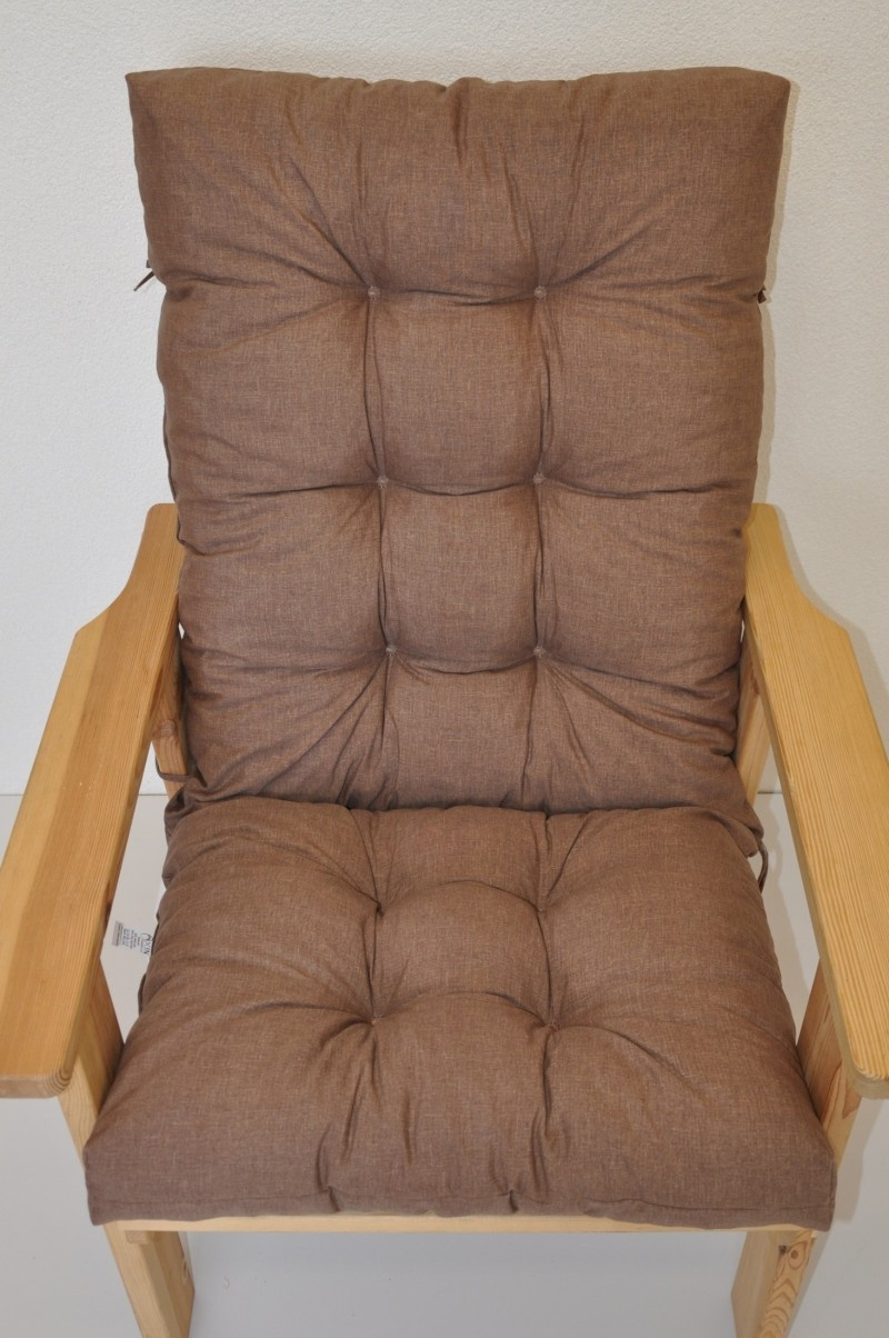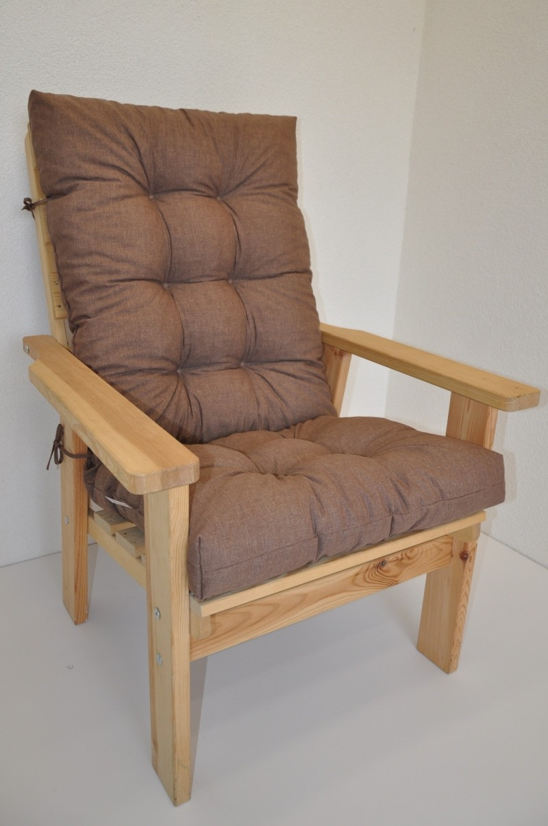 Samostatný polstr na dřevěné zahradní křeslo s vysokým opěradlem.