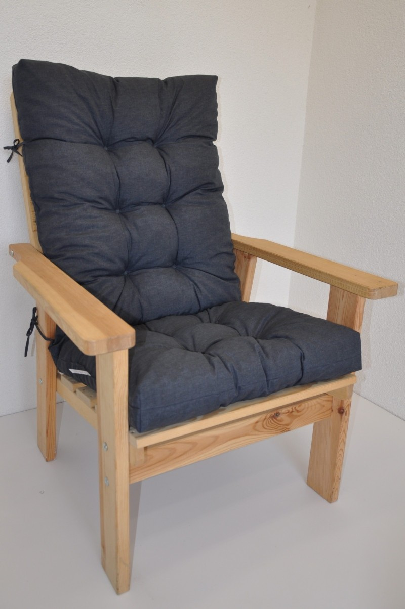 Samostatný polstr na dřevěné zahradní křeslo s vysokým opěradlem.