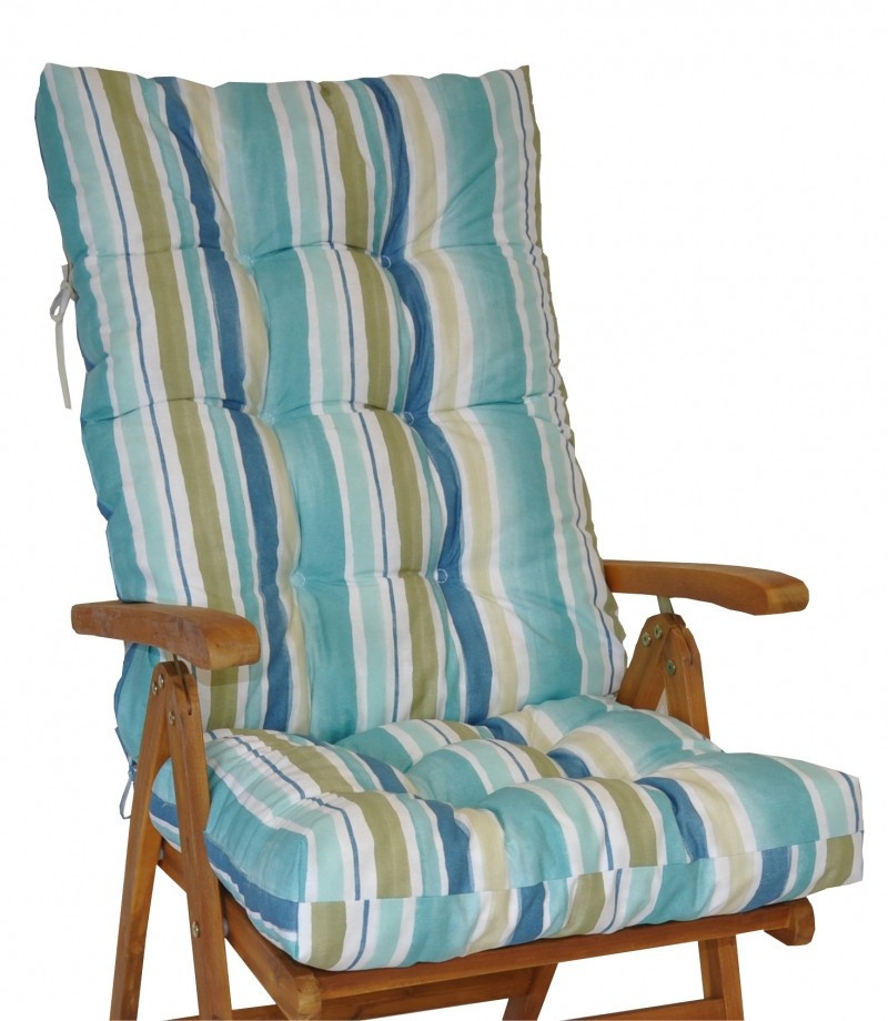 Polstr na zahradní křeslo vysoké - látka modré pruhy