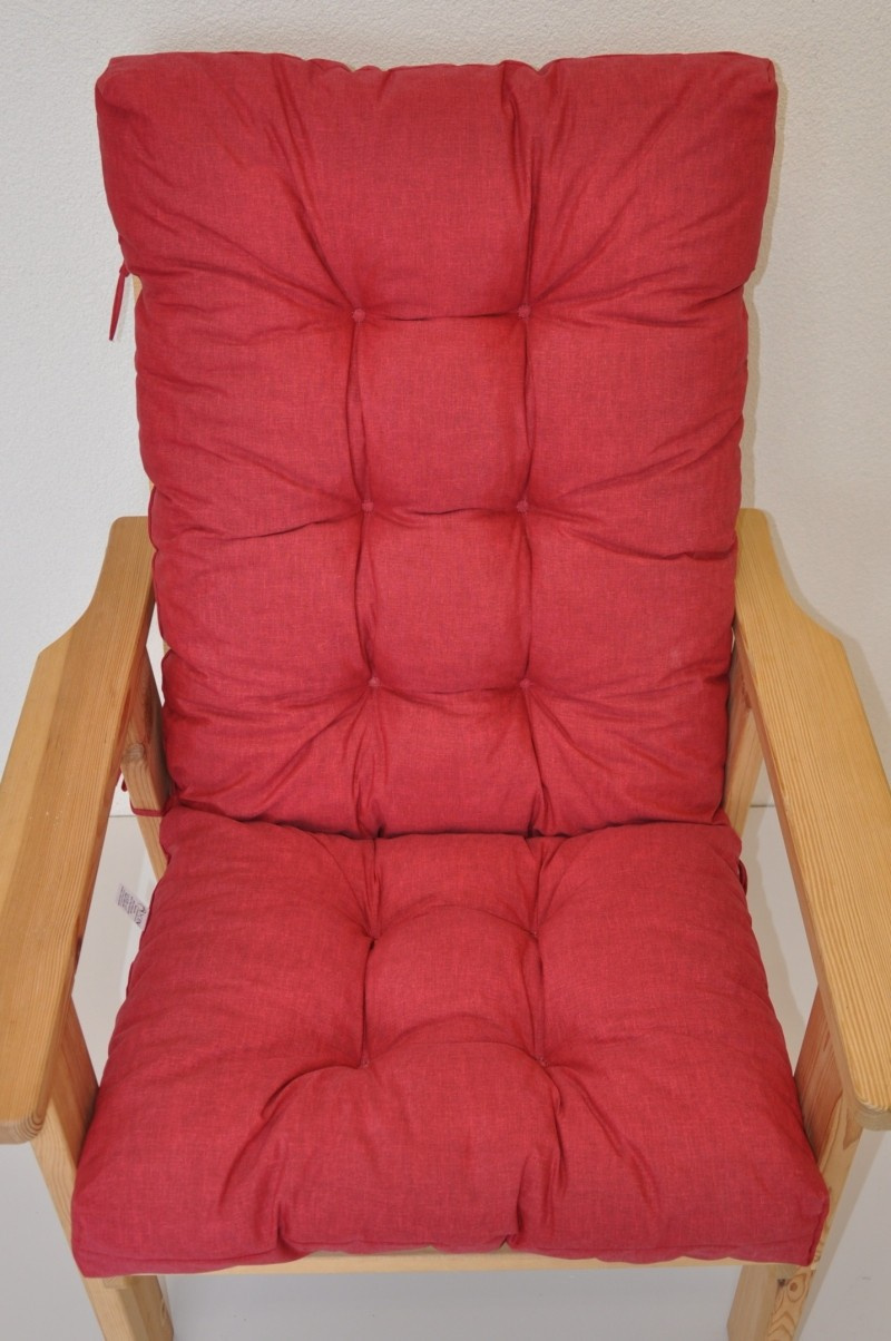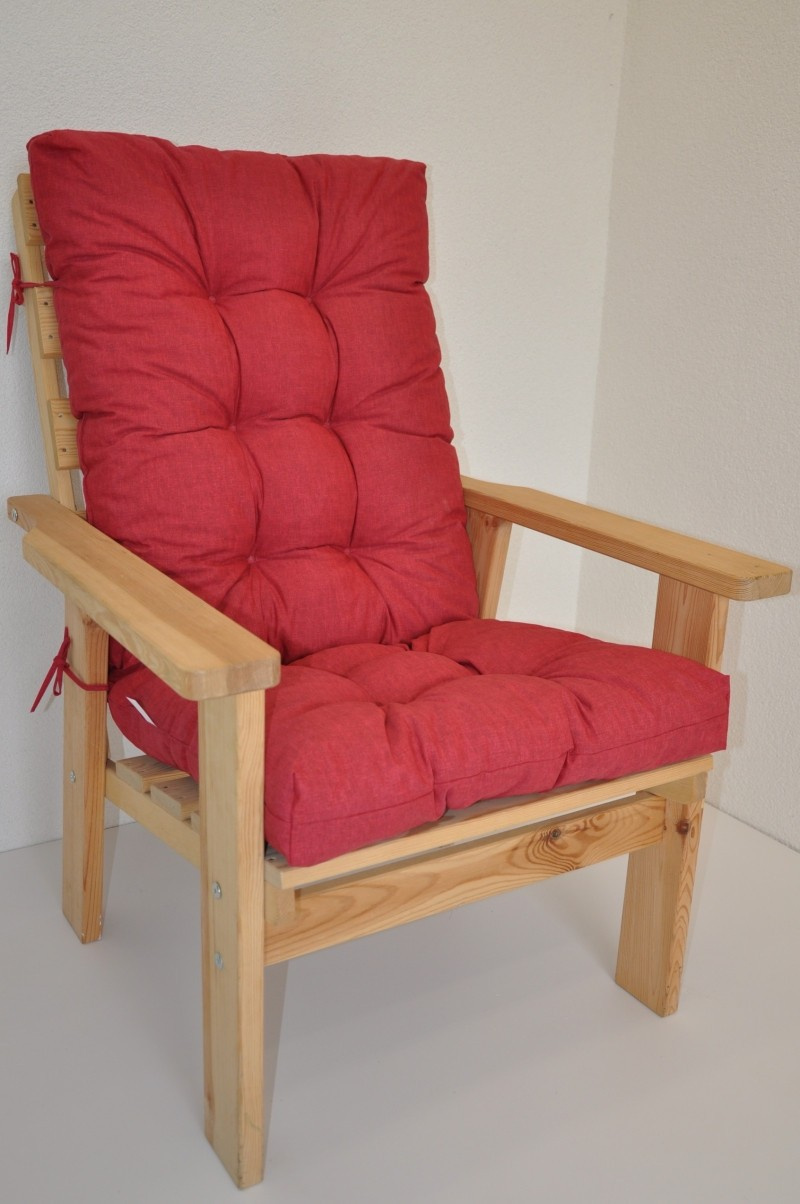 Samostatný polstr na dřevěné zahradní křeslo s vysokým opěradlem.