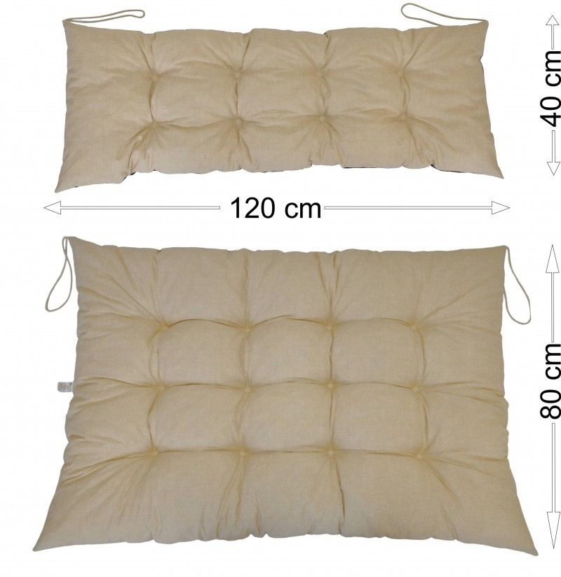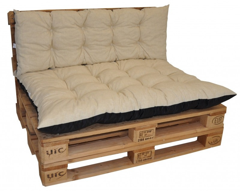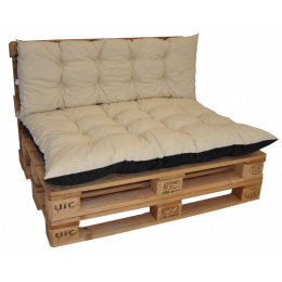 Souprava polstrů na paletové sezení pro 2 osoby. | Sada polstrů na paletové sezení. Sada polstrů obsahuje: - sedací polstr o velikosti 120x80 cm - opěradlový polstr o velikosti 120x40 cm Polstry jsou vyrobeny z velice kvalitní látky. Plněny jsou drceným molitanem. Spodní část polstrů je vyrobena z voděodolné látky. Polstry tak můžete použít například i na trávníku aniž by absorbovaly vlhkost, a pokud se zespod ušpiní, lehce je očistíte vlhkým hadříkem. Sedací polstr je prošitý na dvanácti místech, což zaručuje rovnoměrné rozložení náplně a tím i pohodlné sezení. Polstry jsou opatřeny tkaniceni pro lepší uchycení k paletám či jinému nábytku.