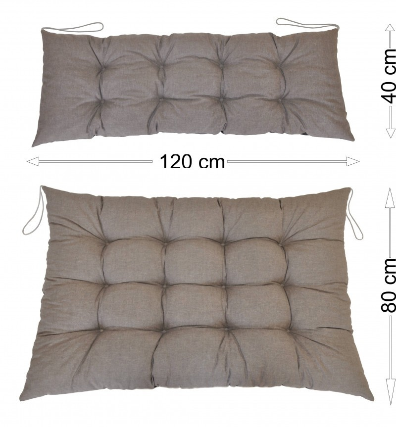 Souprava polstrů na paletové sezení pro 2 osoby. | Sada polstrů na paletové sezení. Sada polstrů obsahuje: - sedací polstr o velikosti 120x80 cm - opěradlový polstr o velikosti 120x40 cm Polstry jsou vyrobeny z velice kvalitní látky. Plněny jsou drceným molitanem. Spodní část polstrů je vyrobena z voděodolné látky. Polstry tak můžete použít například i na trávníku aniž by absorbovaly vlhkost, a pokud se zespod ušpiní, lehce je očistíte vlhkým hadříkem. Sedací polstr je prošitý na dvanácti místech, což zaručuje rovnoměrné rozložení náplně a tím i pohodlné sezení. Polstry jsou opatřeny tkaniceni pro lepší uchycení k paletám či jinému nábytku.