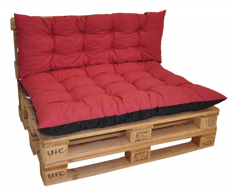 Souprava polstrů na paletové sezení pro 2 osoby. | Sada polstrů na paletové sezení. Sada polstrů obsahuje: - sedací polstr o velikosti 120x80 cm - opěradlový polstr o velikosti 120x40 cm Polstry jsou vyrobeny z velice kvalitní látky. Plněny jsou drceným molitanem. Spodní část polstrů je vyrobena z voděodolné látky. Polstry tak můžete použít například i na trávníku aniž by absorbovaly vlhkost, a pokud se zespod ušpiní, lehce je očistíte vlhkým hadříkem. Sedací polstr je prošitý na dvanácti místech, což zaručuje rovnoměrné rozložení náplně a tím i pohodlné sezení. Polstry jsou opatřeny tkaniceni pro lepší uchycení k paletám či jinému nábytku.