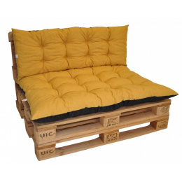 Souprava polstrů na paletové sezení pro 2 osoby. | Sada polstrů na paletové sezení. Sada polstrů obsahuje: - sedací polstr o velikosti 120x80 cm - opěradlový polstr o velikosti 120x40 cm Polstry jsou vyrobeny z velice kvalitní látky. Plněny jsou drceným molitanem. Spodní část polstrů je vyrobena z voděodolné látky. Polstry tak můžete použít například i na trávníku aniž by absorbovaly vlhkost, a pokud se zespod ušpiní, lehce je očistíte vlhkým hadříkem. Sedací polstr je prošitý na dvanácti místech, což zaručuje rovnoměrné rozložení náplně a tím i pohodlné sezení. Polstry jsou opatřeny tkaniceni pro lepší uchycení k paletám či jinému nábytku.