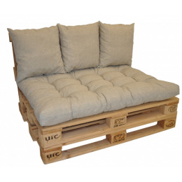 Souprava polstrů na paletové sezení pro 2 osoby. | Sada polstrů na paletové sezení. Sada polstrů obsahuje: - sedací polstr o velikosti 120x80 cm - 3 polštáře o velikosti 45x45 cm Polstry jsou vyrobeny z velice kvalitní látky. Plněny jsou drceným molitanem. Tloušťka polstrů je přibližně 10 cm. Tyto polstry vyrábíme v naší firemní dílně. Velice si zakládáme na kvalitě zpracování. Všiměte si odšitých rohů a kvalitního prošití na profesionálních prošívacích strojích. Sedací polstr je prošitý na dvanácti místech, což zaručuje pohodlné sezení a polstry netlačí. U nás máte zkrátka jistotu, že nám na kvalitě záleží a naše výrobky také sami zkoušíme ( ne pouze prodáváme).