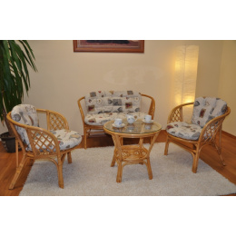 Kompletní sada polstrů na soupravu Bahama velká v barevném provedení dle obrázku | Souprava se skládá z polstrů na 2 křesla Bahama a lavici Bahama. Materiál potahové látky 100% bavlna, výplň molitan. Polstry lze prát ručně na 40 oC nebo čistit v čistírně. Polstry jsou vyráběny v České republice. Sedák křesla je kruhový a má průměr 50 cm. Opěrka křesla je široká 45 cm a její výška je 38 cm. Sedák pohovky má velikost 96 x 50 cm, opěrka má velikost 88 x 38 cm