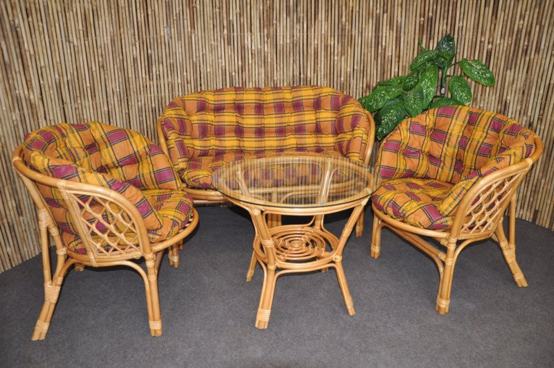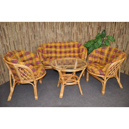 Souprava náhradních polstrů na Soupravu Bahama velká v provedení dle obrázku | Souprava se skládá z polstrů na 2 křesla Bahama a pohovku Bahama. Materiál potahové látky 100% bavlna, výplň molitan. Polstry lze prát ručně na 40 oC nebo čistit v čistírně. Polstry jsou vyráběny v České republice. Sedák křesla je kruhový a má průměr 50 cm. Opěrka křesla je široká 106 cm a její výška je 37 cm. Sedák pohovky má velikost 96 x 50 cm, opěrka pohovky má velikost 150 x 37 cm