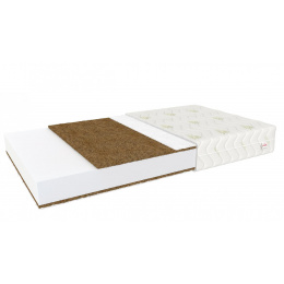 kokosová vložka: 1 cm, polyuretanová pěna T25: 7 cm, kokosová vložka: 1 cm.