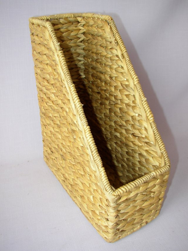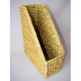 Ratan proutí - pořadač na časopisy formátu A4, materiál: drátěná kostra, výplet ze stonků vodního hyacintu |