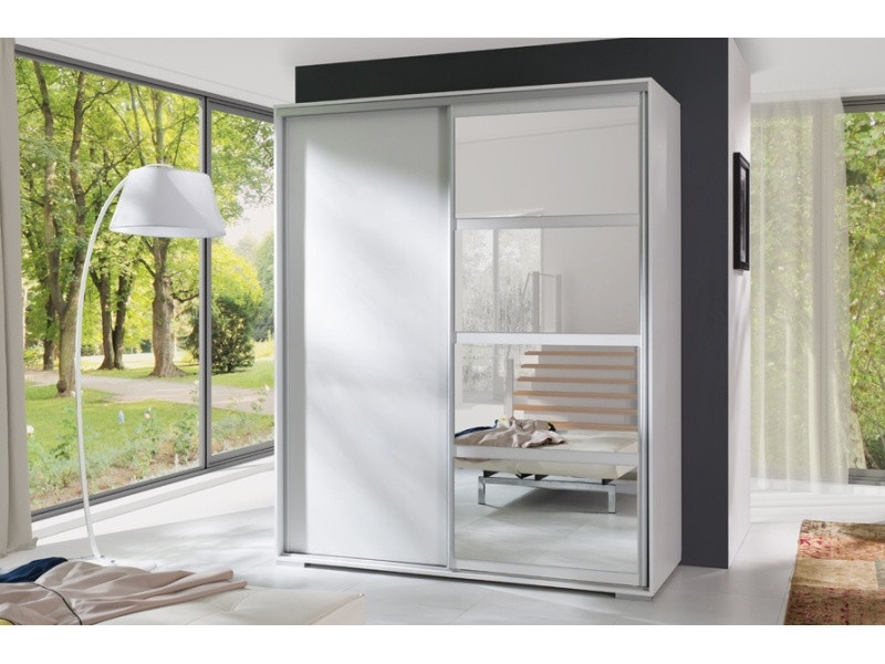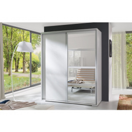Skříň LEO je vyrobena z laminované 16 mm dřevotřísky. Rozdělení vnitřku dle detailní fotografie. Okraje jsou dýhovány. Skříň má posuvné dveře, na jedné straně skříně zrcadlo.