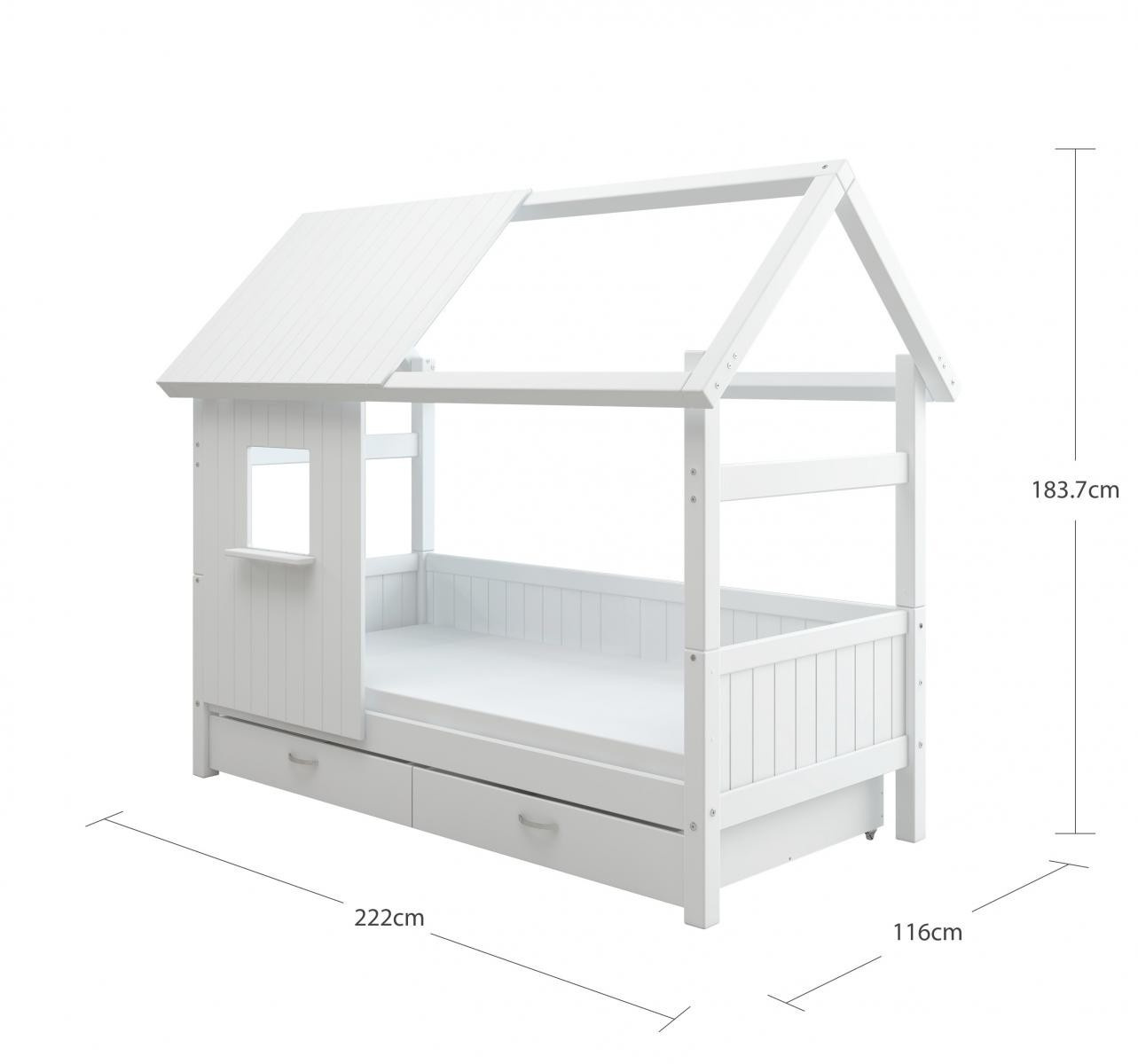 Postel domeček Romantic s atraktivními detaily dodá dětskému pokoji okouzlující a hravou atmosféru, zásuvky pod postelí zase spoustu praktického úložného prostoru. Tato postel je dokonalým způsobem, jak vytvořit klidný a zároveň zábavný prostor, díky kterému bude pokoj vašeho dítěte výjimečný.