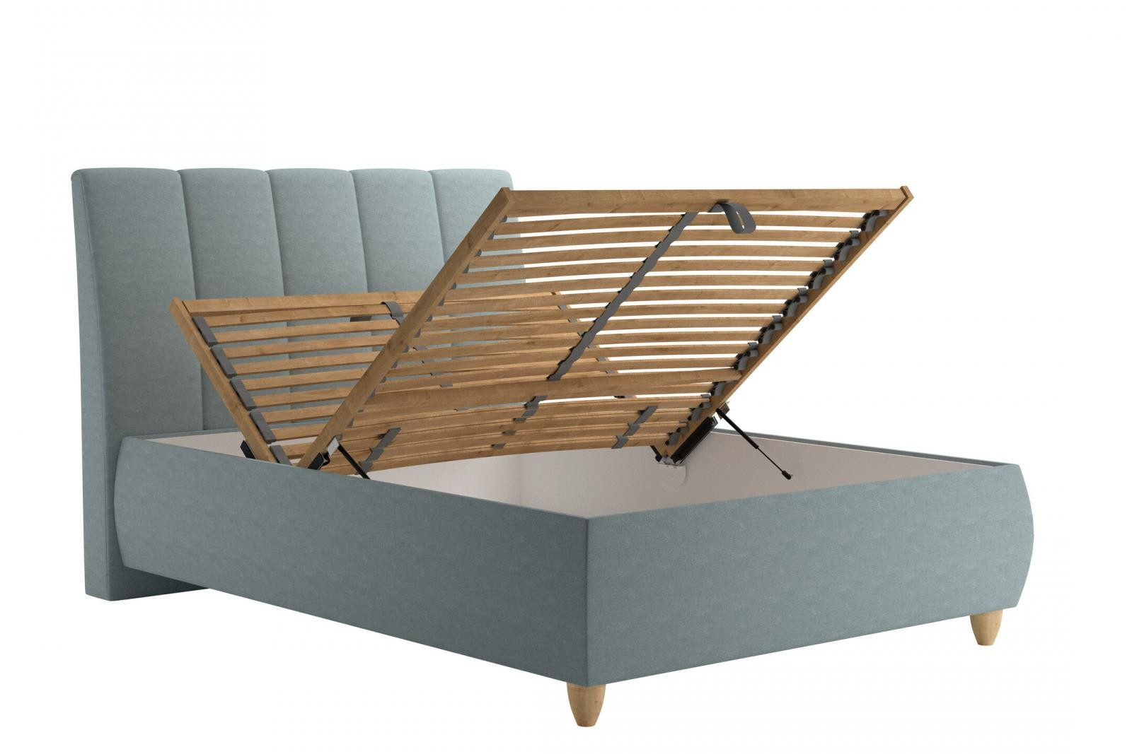 Úložný prostor lůžka se otevírá za pomoci plynových pístů od nohou postele.