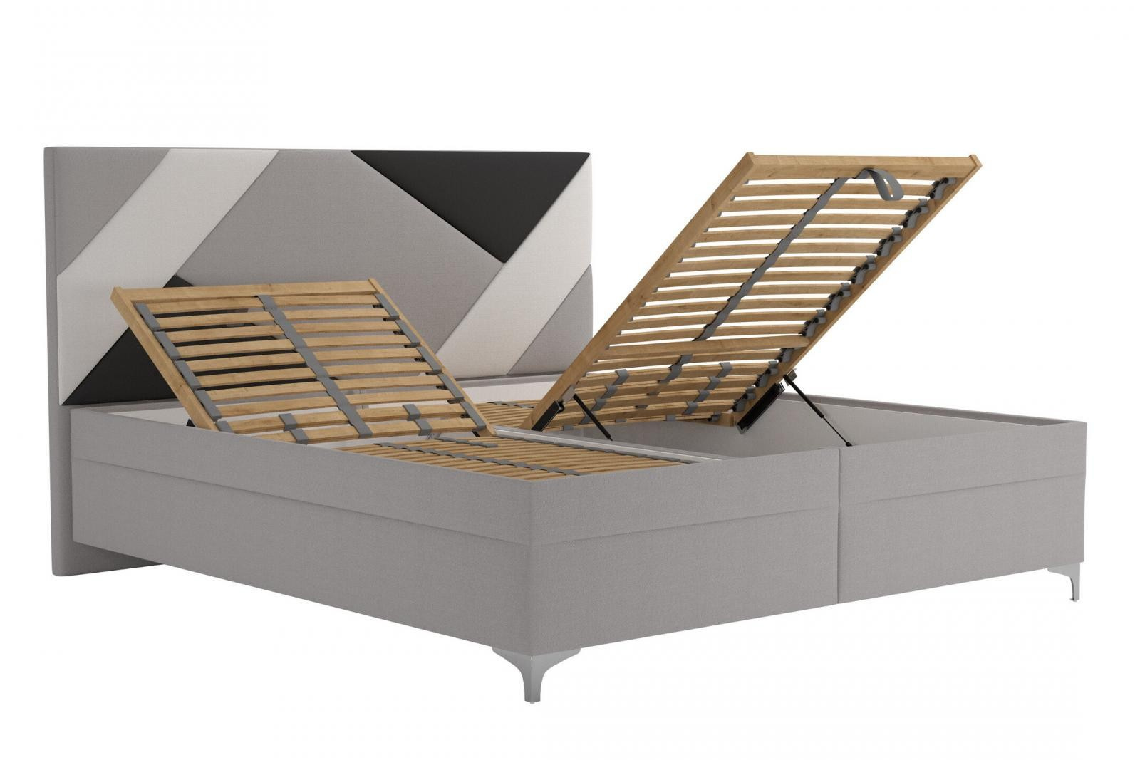 Úložný prostor lůžka se otevírá za pomoci plynových pístů od nohou postele.