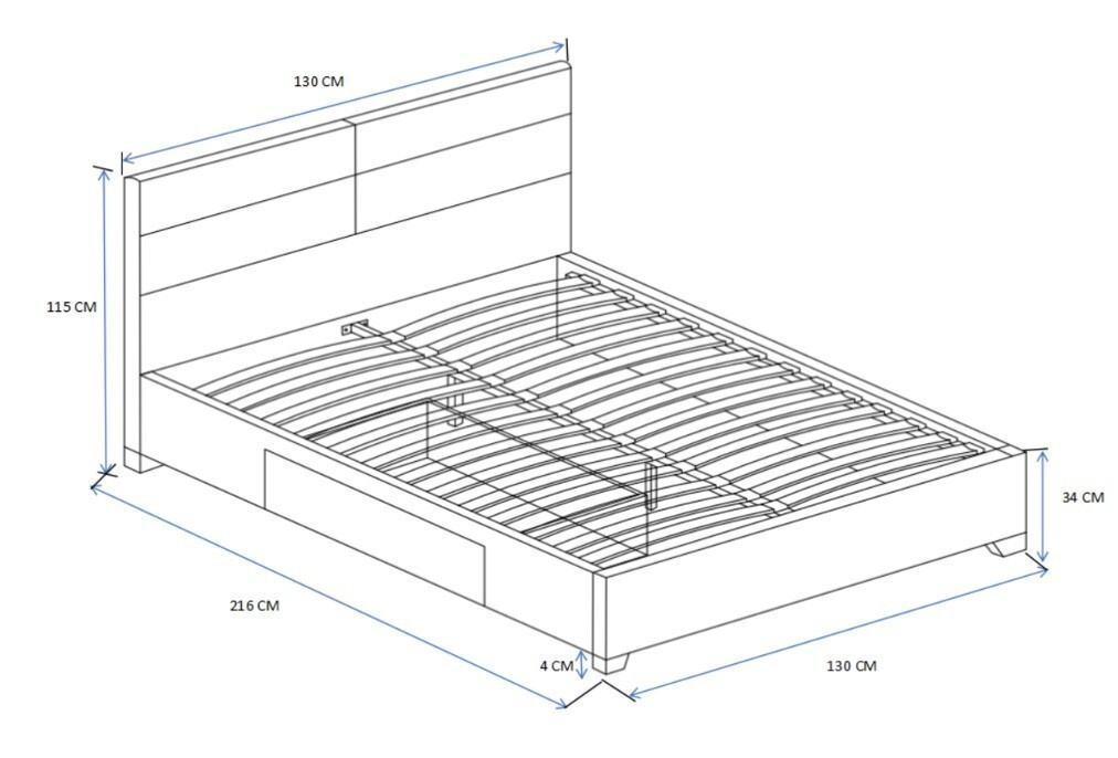 Se spacím prostorem o rozměrech 120 x 200 cm je tato postel ideální pro jednu osobu. Nabízí dostatek místa pro pohodlný spánek a relaxaci. Díky šířce 130 cm, maximální výšce 115 cm a délce 218 cm se postel snadno vejde do většiny ložnic, aniž by zabírala příliš mnoho prostoru.