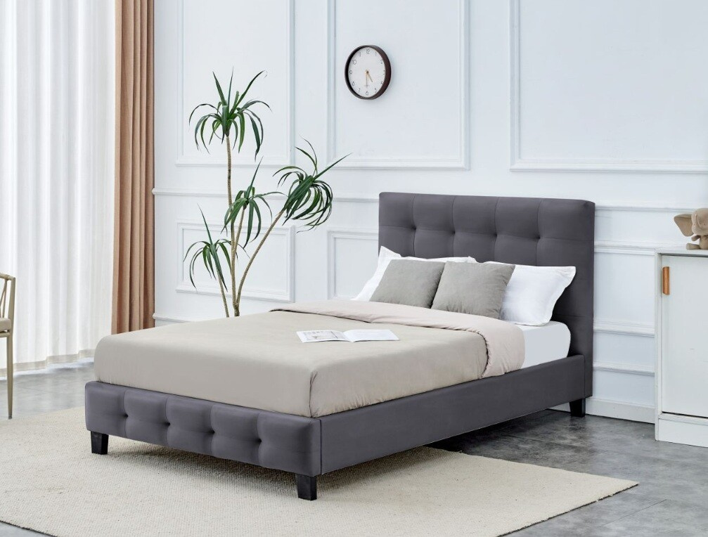 Postel je vyrobena z kvalitního kovu, což zajišťuje její dlouhou životnost a stabilitu. Kovová konstrukce je nejen odolná, ale také přidává moderní nádech do celkového designu postele. Šedé čalounění dodává posteli elegantní vzhled, který se snadno kombinuje s různými styly interiéru, ať už preferujete moderní, minimalistický nebo klasický styl.