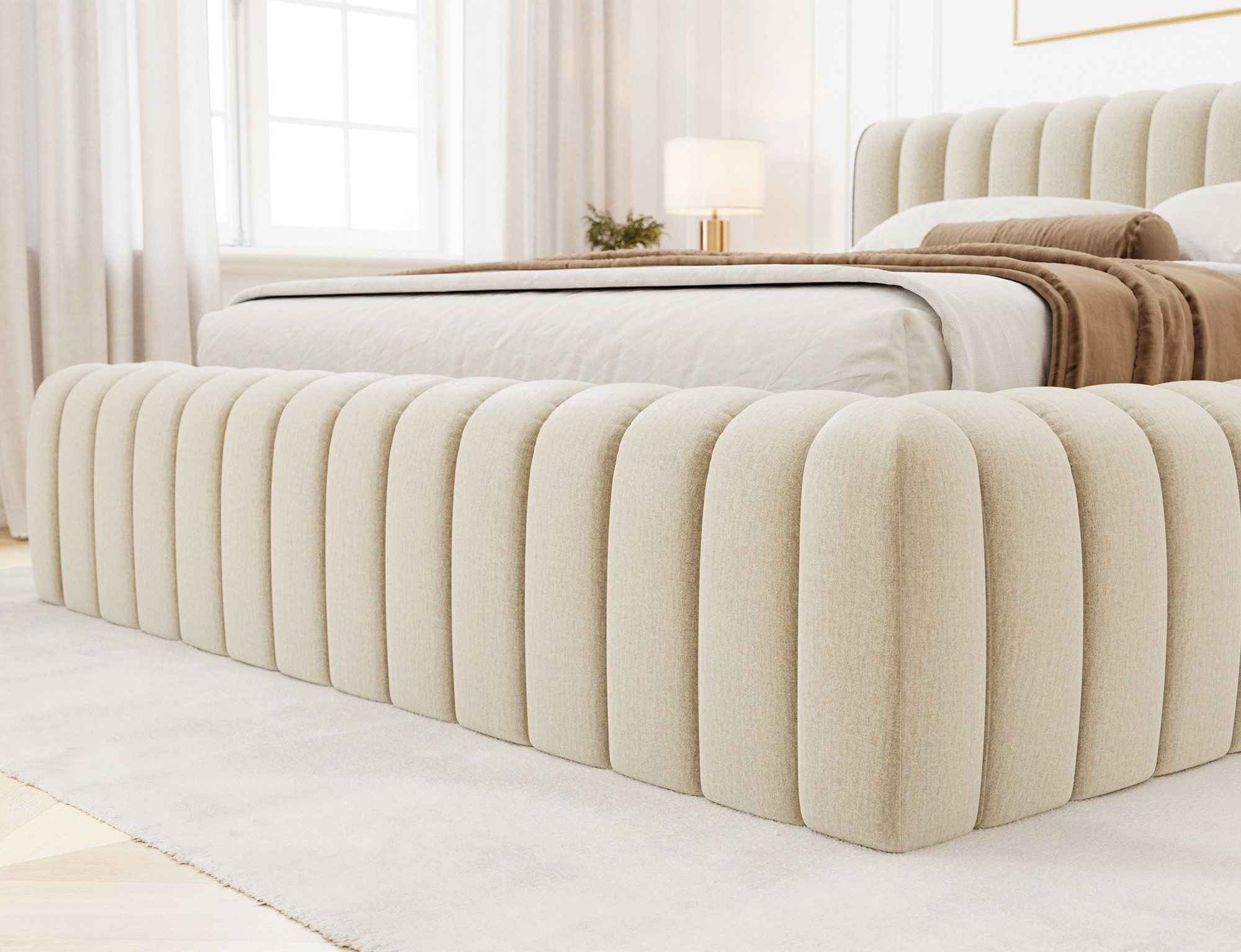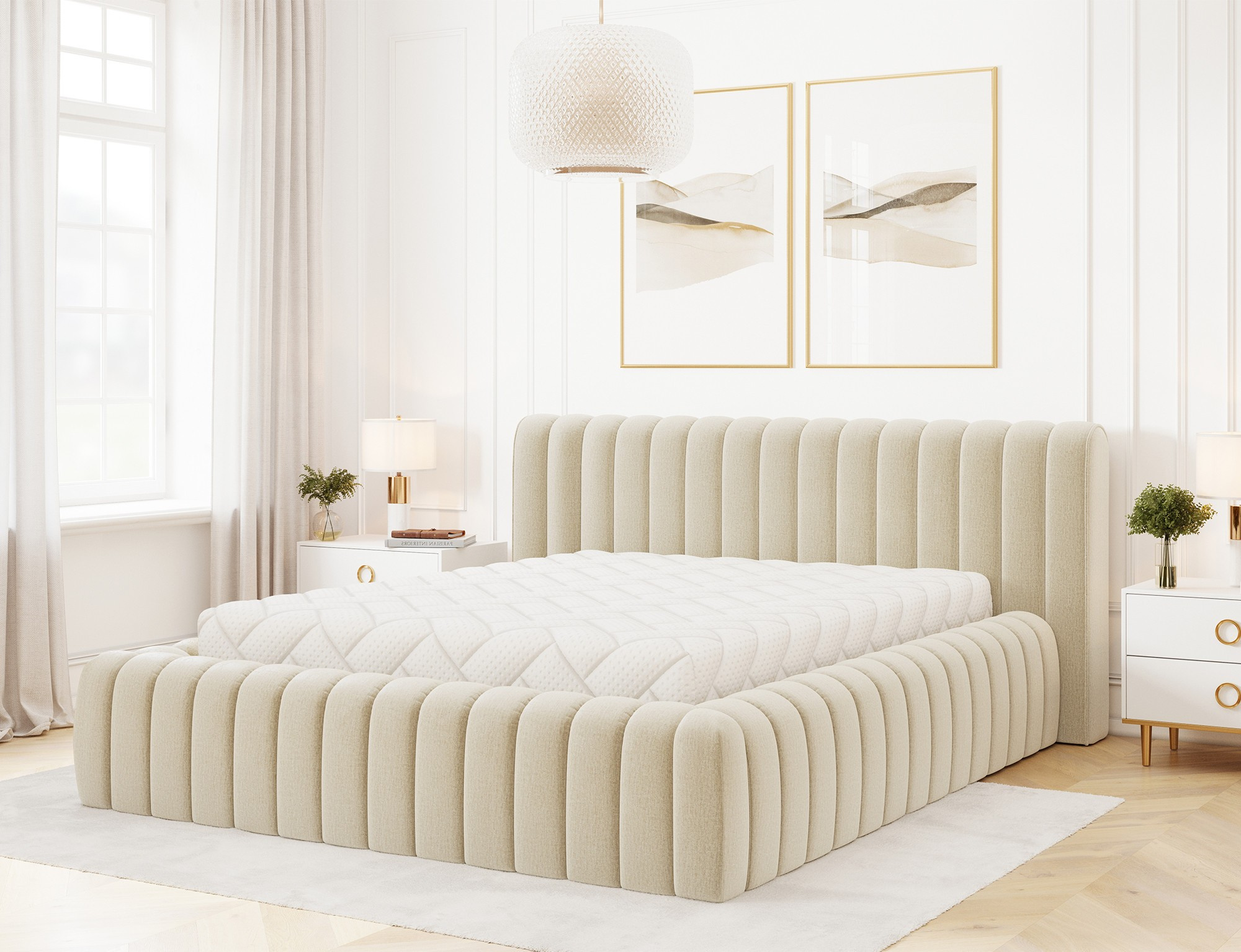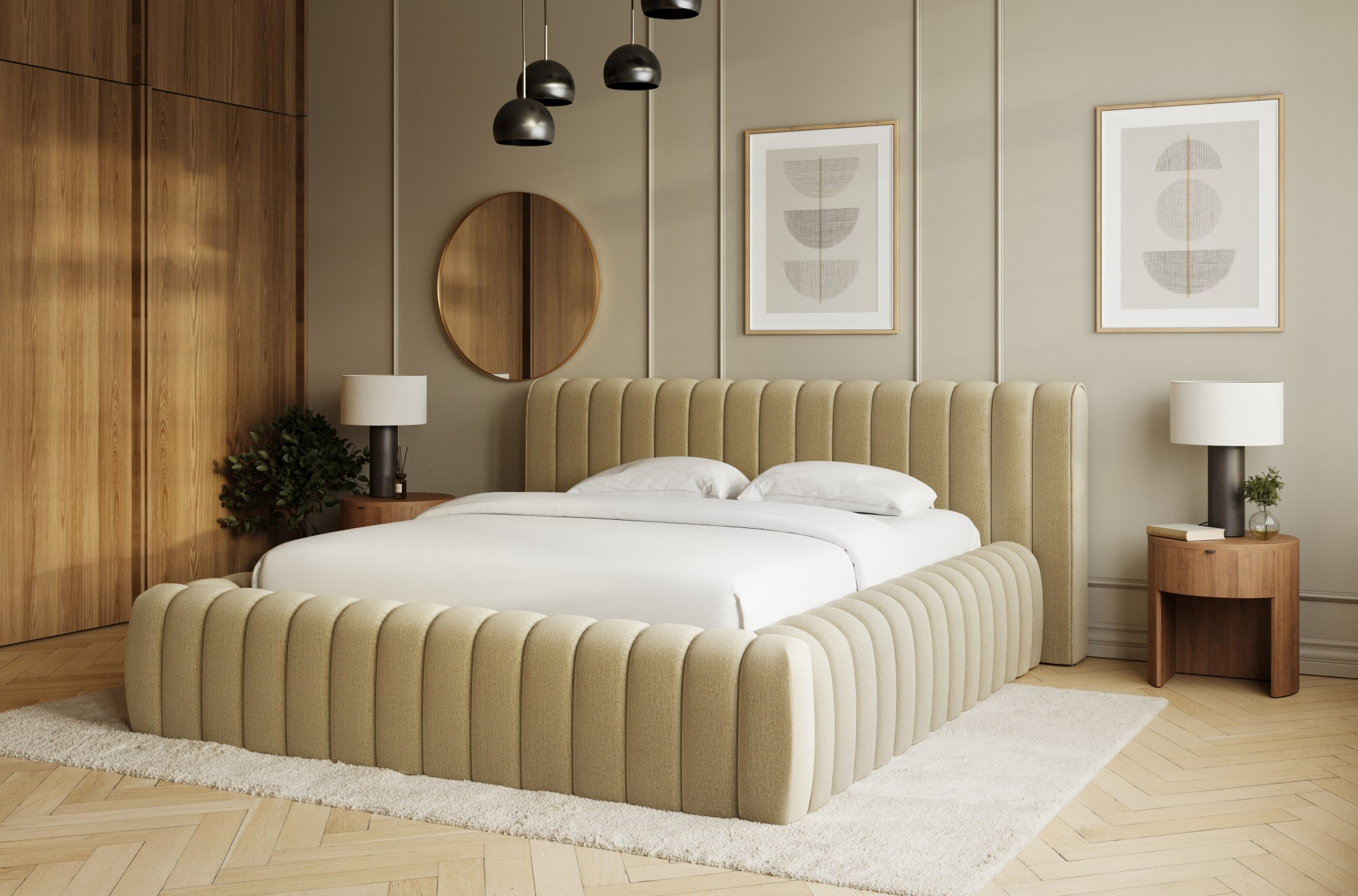 Postel Carilla je moderní a elegantní kus nábytku dostupný ve třech velikostech: 140x200 cm, 160x200 cm a 180x200 cm, který dokonale ladí se současnými trendy v interiéru. Jeho pohodlí je zajištěno vysoce kvalitní polyuretanovou pěnou ve výplni rámu a opěradla—T2130 a T2315—která poskytuje jak odolnost, tak útulnost. Jeho robustní konstrukce je podpořena kovovým rámem s 36 lamelami, což zajišťuje vynikající oporu matrace a klidný spánek. Design je dokončen černým kluzákem, který zvyšuje stabilitu i estetiku.