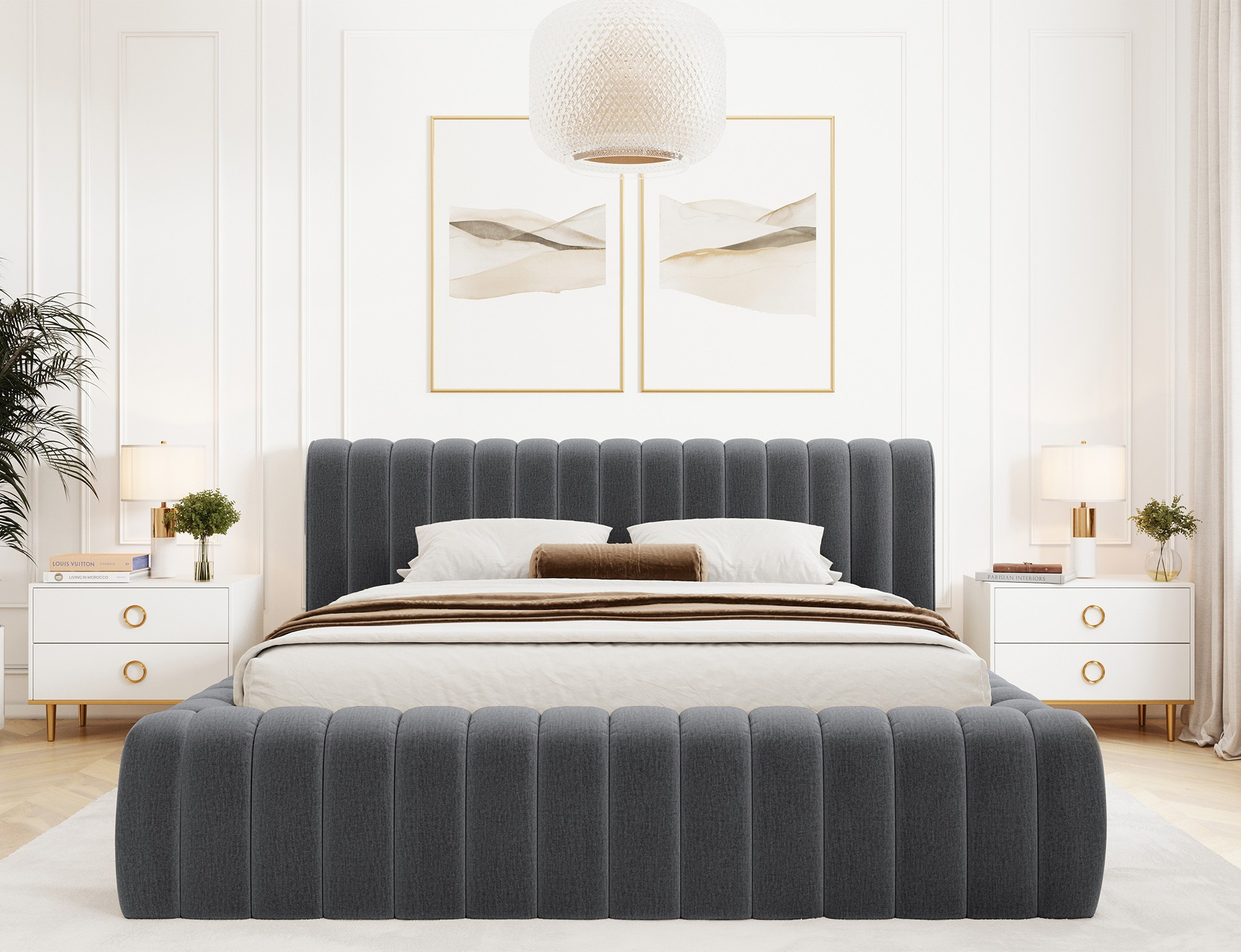 Postel Carilla je moderní a elegantní kus nábytku dostupný ve třech velikostech: 140x200 cm, 160x200 cm a 180x200 cm, který dokonale ladí se současnými trendy v interiéru. Jeho pohodlí je zajištěno vysoce kvalitní polyuretanovou pěnou ve výplni rámu a opěradla—T2130 a T2315—která poskytuje jak odolnost, tak útulnost. Jeho robustní konstrukce je podpořena kovovým rámem s 36 lamelami, což zajišťuje vynikající oporu matrace a klidný spánek. Design je dokončen černým kluzákem, který zvyšuje stabilitu i estetiku.