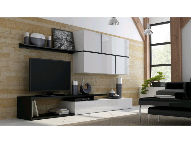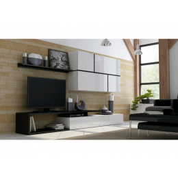 : Korpus černý mat, dvířka černý lesk, detaily v bílém matu