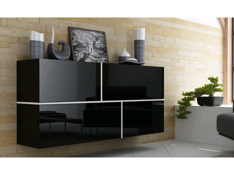 Závěsná komoda se otevírá systémem klik-klak a uvnitř nejsou žádné police.