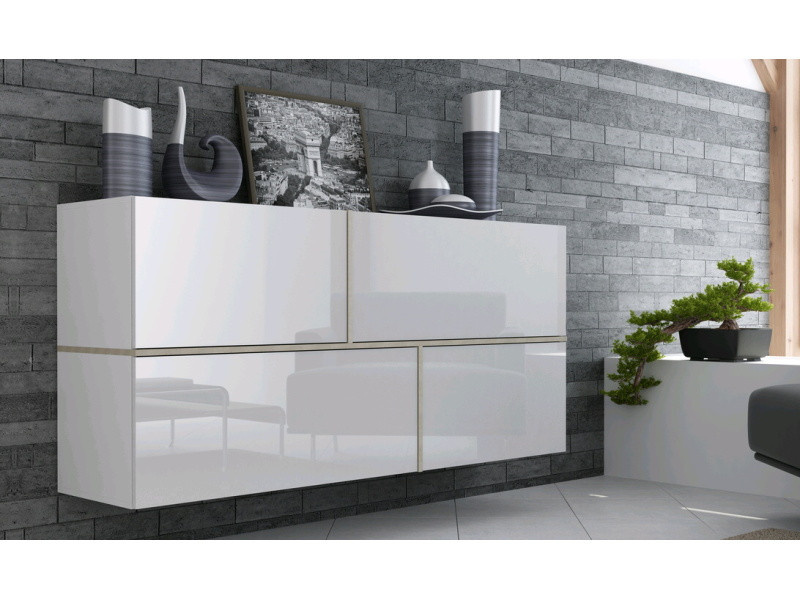 Závěsná komoda se otevírá systémem klik-klak a uvnitř nejsou žádné police.