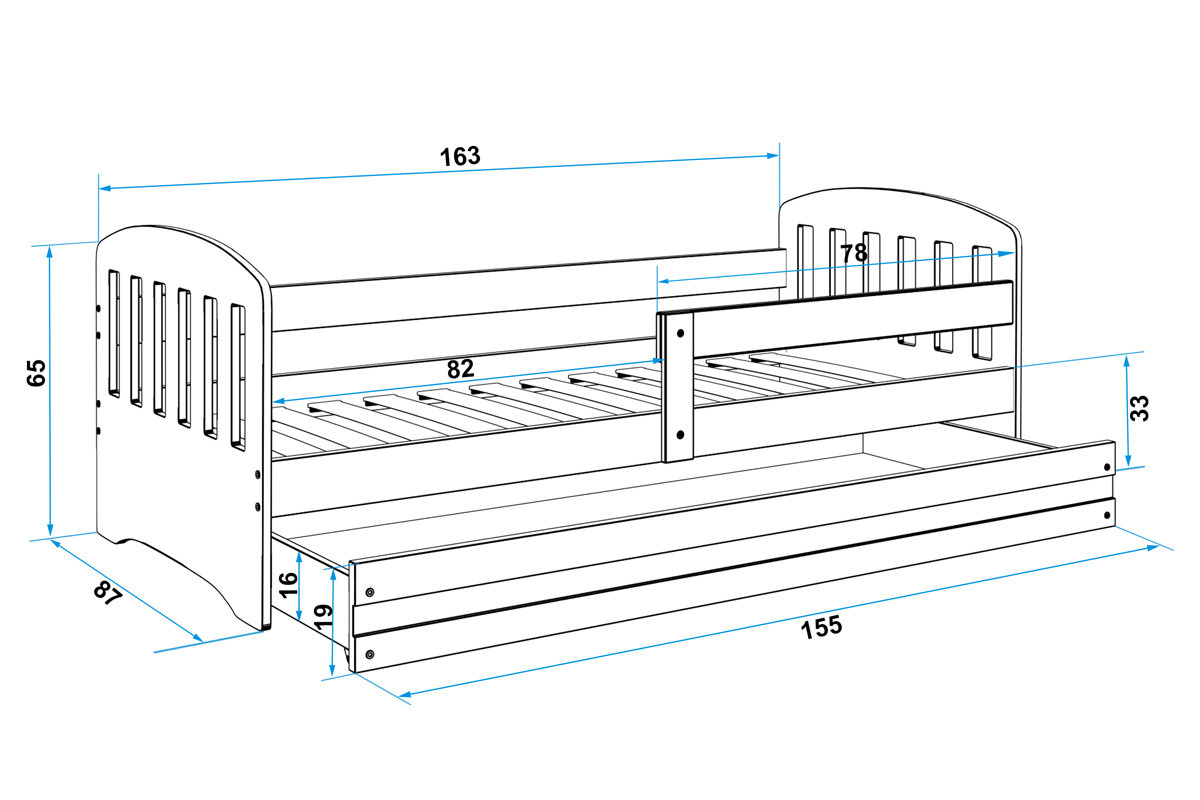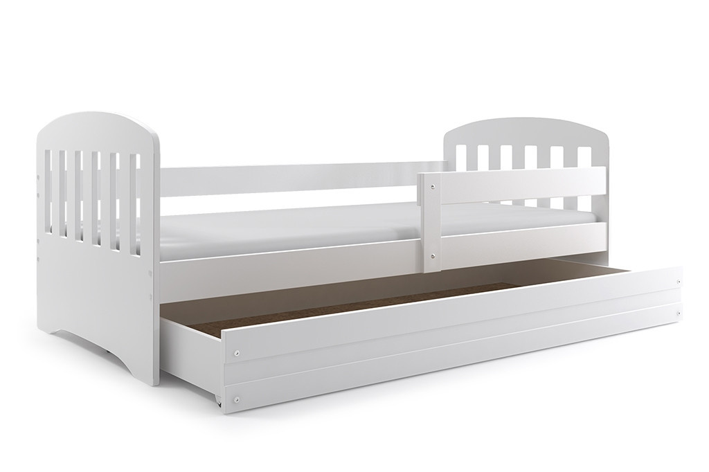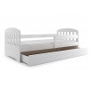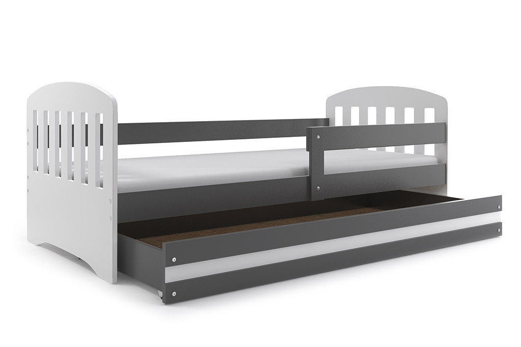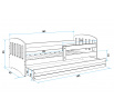 Dětská postel Clark, osloví zejména ty, kteří pro své dítě hledají funkčnost, moderní design a kvalitu. Rám postele je vyroben z borovicového dřeva, které je lakováno vodou ředitelným lakem, který je vhodný na dětský nábytek a vyhovuje normám o nezávadnosti. Bílé panely na bocích, jsou vyrobeny z kvalitní MDF desky. V ceně postele je zábrana, která zajistí bezpečný a klidný spánek Vašeho dítěte. Zábranu si můžete podle potřeby umístit na pravou, nebo levou stranu postele. Součástí postele je také praktický úložný prostor na kolečkách, který můžete využít např. na hračky nebo lůžkoviny, rošt a pěnová matrace se snímatelným potahem. Tloušťka matrace je 7cm. Plocha pro spaní je 80x160 cm. Postel je dodávána v demontu a součástí je montážní plánek včetně všech potřebných spojovacích materiálů. Postel nabízíme ve třech barevných provedeních. Vyobrazené doplňky a dekorace nejsou v ceně.