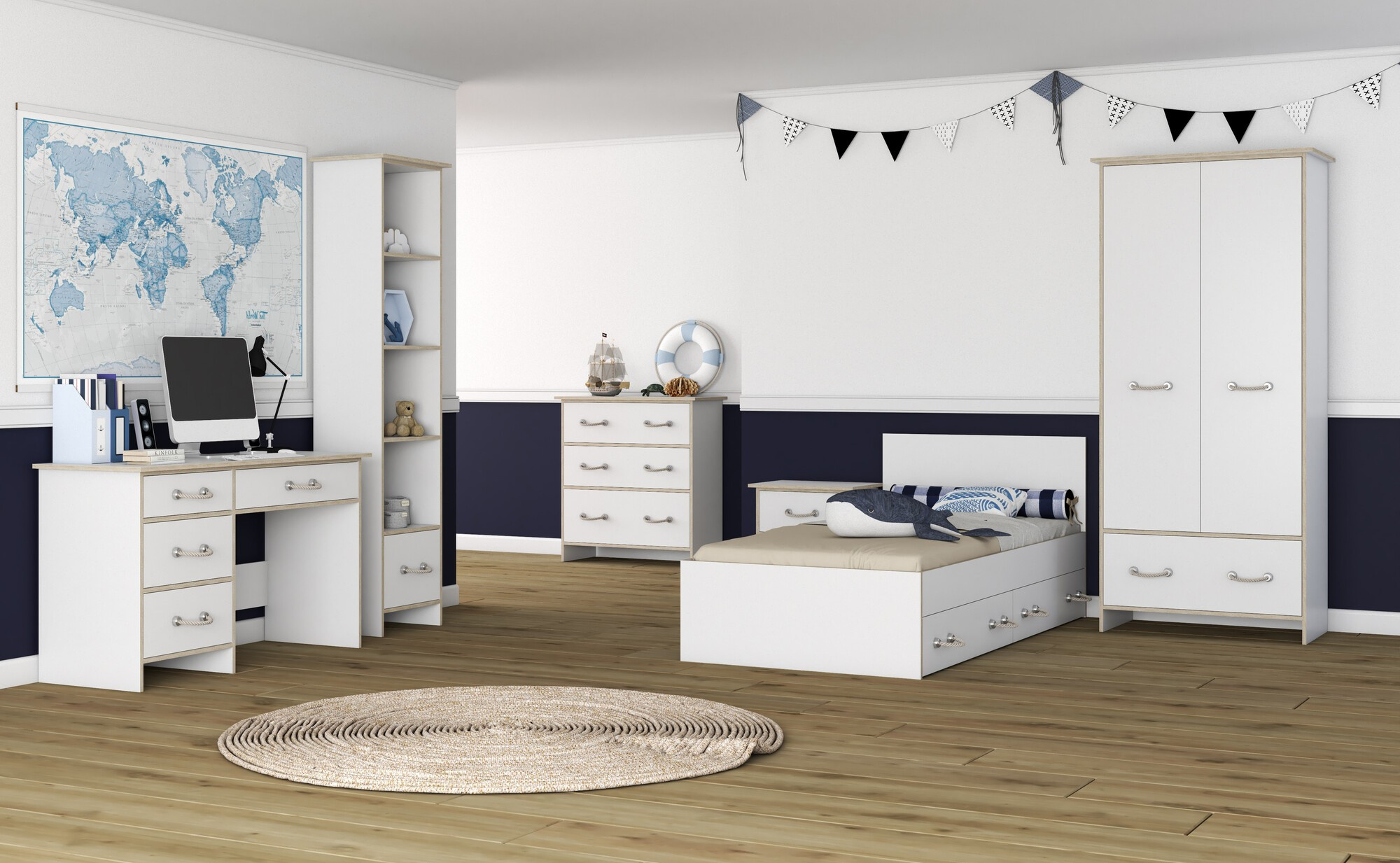 Systém COSMO je praktický nábytek do dětského pokoje, který okouzlí ozdobnými úchytkami v námořnickém stylu.