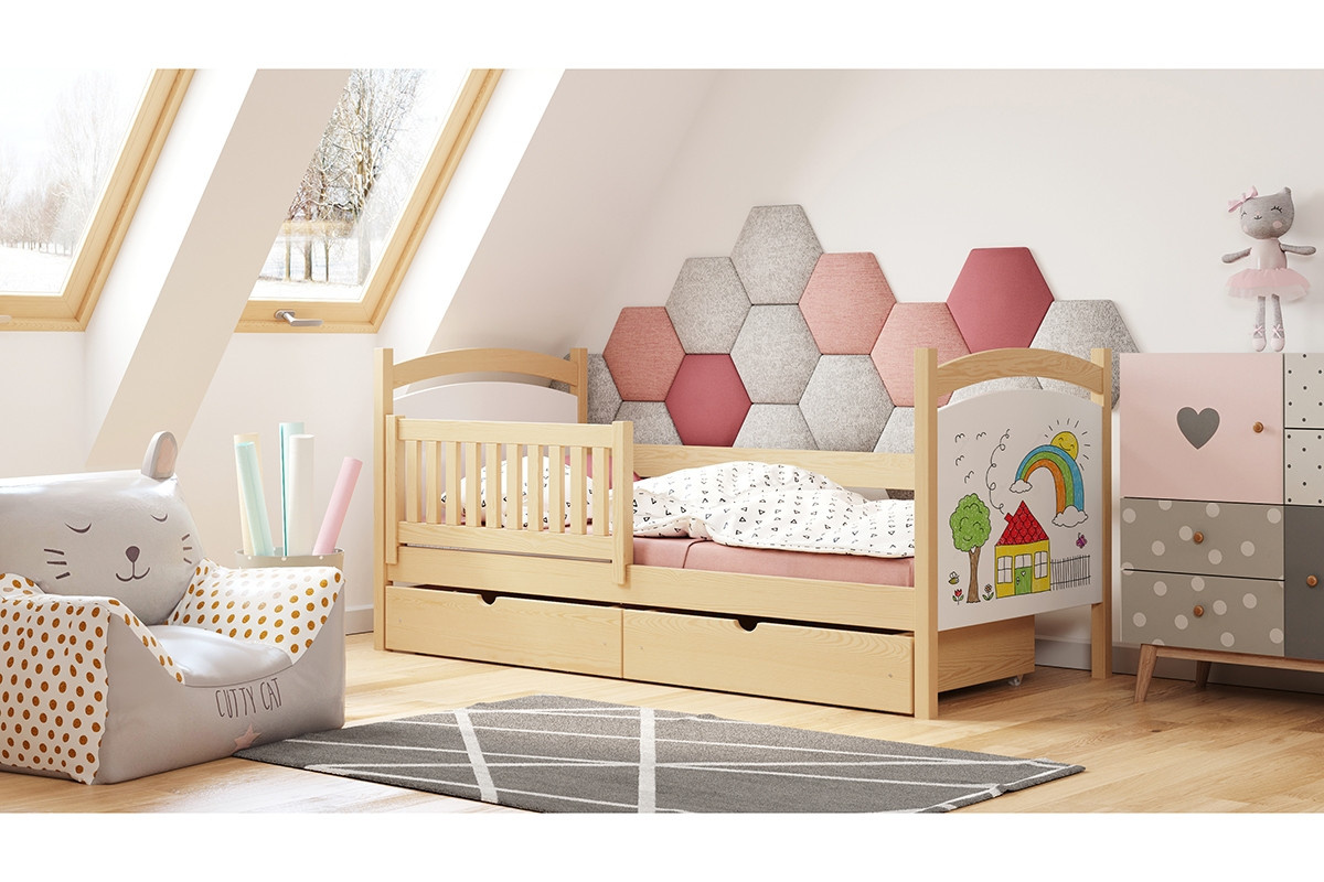 Postel dětská s tabulí na malování Amely - Barva Borovice, rozměr 80x180