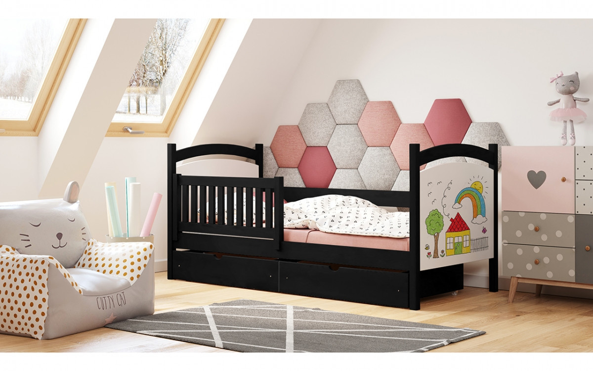 Postel dětská s tabulí na malování Amely - Barva Černý, rozměr 80x180