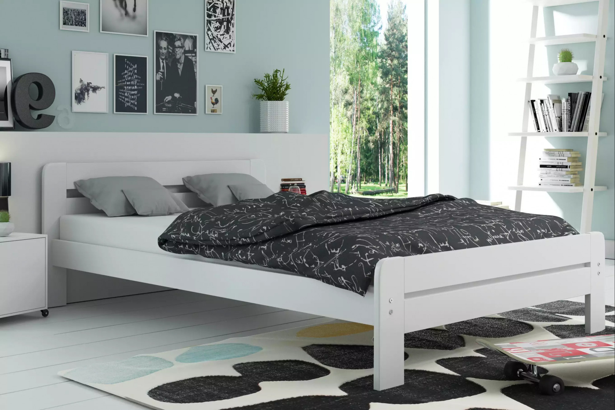 - Rám postele - vyrobený z borovicového dřeva, natřený vodním lakem.