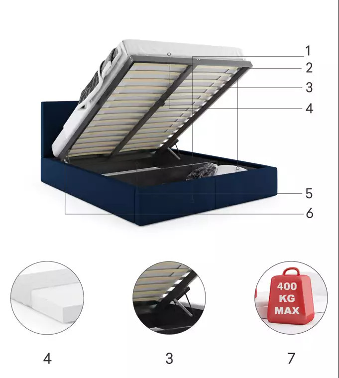 Postel HILTON bez matrace, 180x200 cm, Modrá