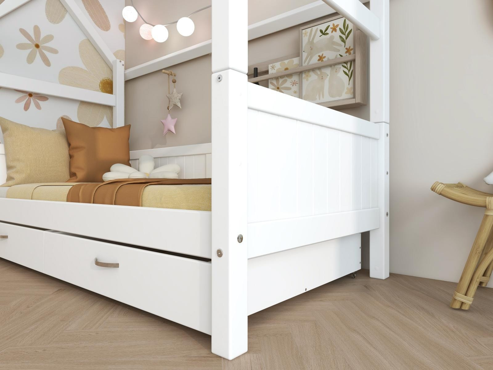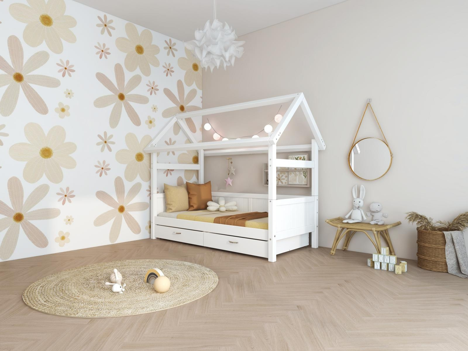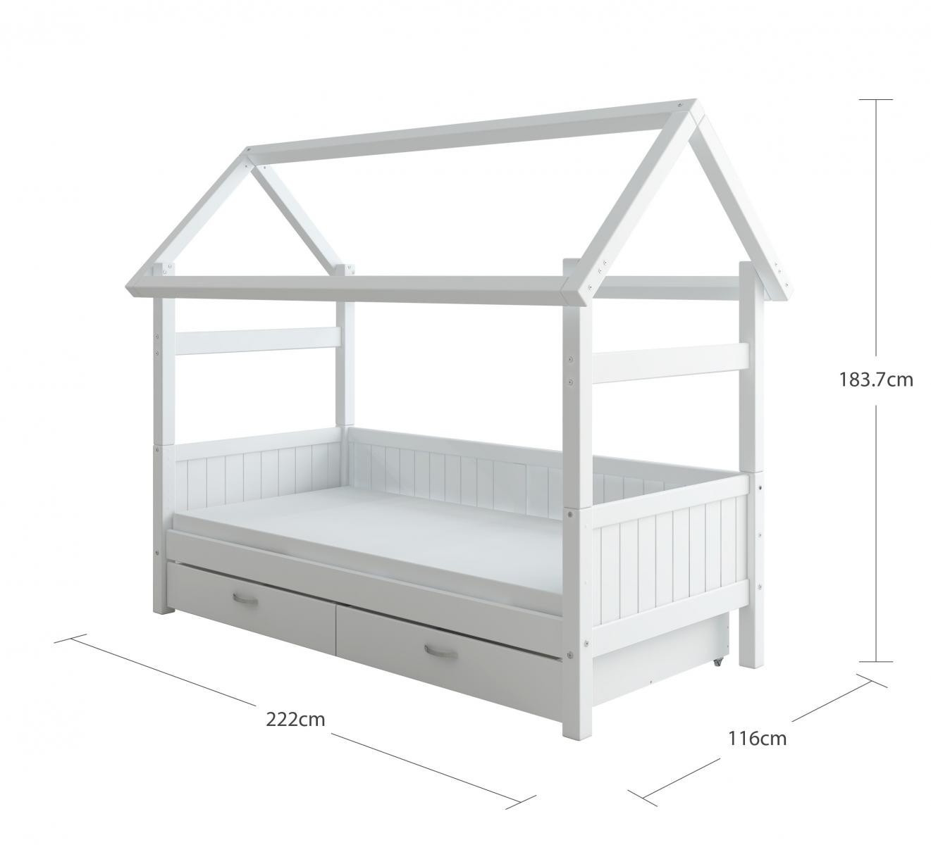 Postel domeček Romantic s atraktivními detaily dodá dětskému pokoji okouzlující a hravou atmosféru, zásuvky pod postelí zase spoustu praktického úložného prostoru. Tato postel je dokonalým způsobem, jak vytvořit klidný a zároveň zábavný prostor, díky kterému bude pokoj vašeho dítěte výjimečný.