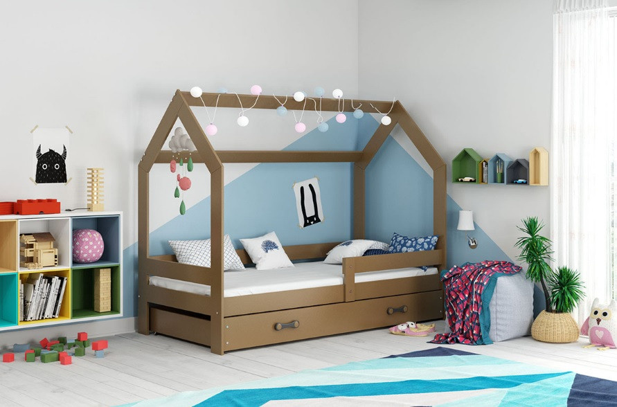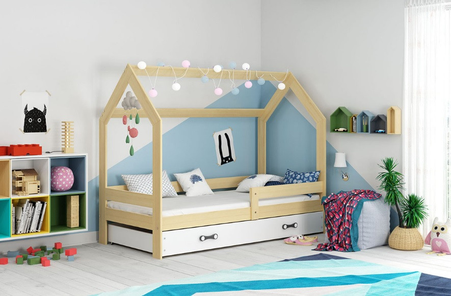 Střecha nad hlavou je důležitá, dopřejte ji vašim dětem každou noc, a to doslova. Postýlka v oblíbeném tvaru bude pro vaše děti jejich vlastním domečkem. Z masivní borovice vyrobená dětská postel Domek o rozměru 80 x 160 cm je perfektním doplňkem každého dětského pokoje. Můžete ji dětem ještě zútulnit a doplnit ji třeba mantinelem, baldachýnem nebo světýlky. Díky zábraně je postýlka bezpečná a nehrozí, že by z ní vaše děti spadly. Roztomilá dětská postýlka ve tvaru domečku bude ozdobou každého dětského pokojíku.