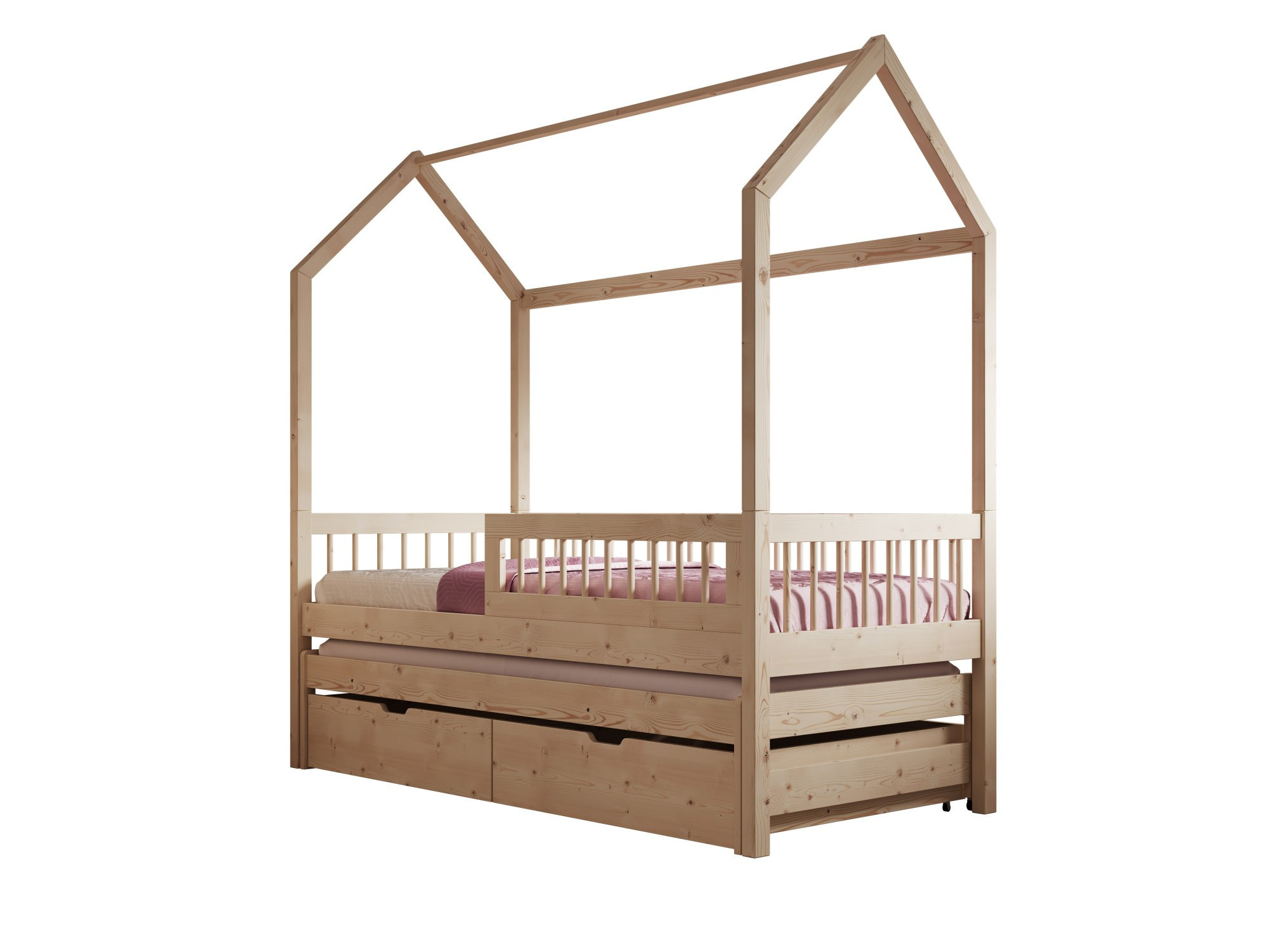 Postel Domek Artes II je ideálním řešením pro ty, kteří hledají jak originální design, tak praktická řešení do dětského nebo studentského pokoje. Tento model **dvoulůžkové postele** s výjimečným tvarem domečku se snadno může stát ústředním bodem každého interiéru. Postel byla vybavena **dalšími zásuvkami na ukládání**, které pomohou s organizací prostoru, umožňující ukládání ložního prádla, hraček nebo jiných nezbytných předmětů. Díky tomu bude mít vaše dítě více místa na hraní a učení. Jednou z největších předností postele Artes II je její **modulární konstrukce**. Rám ve tvaru domečku lze snadno rozmontovat, což umožňuje jeho přeměnu na klasičtější model postele, přizpůsobený měnícím se potřebám dítěte.