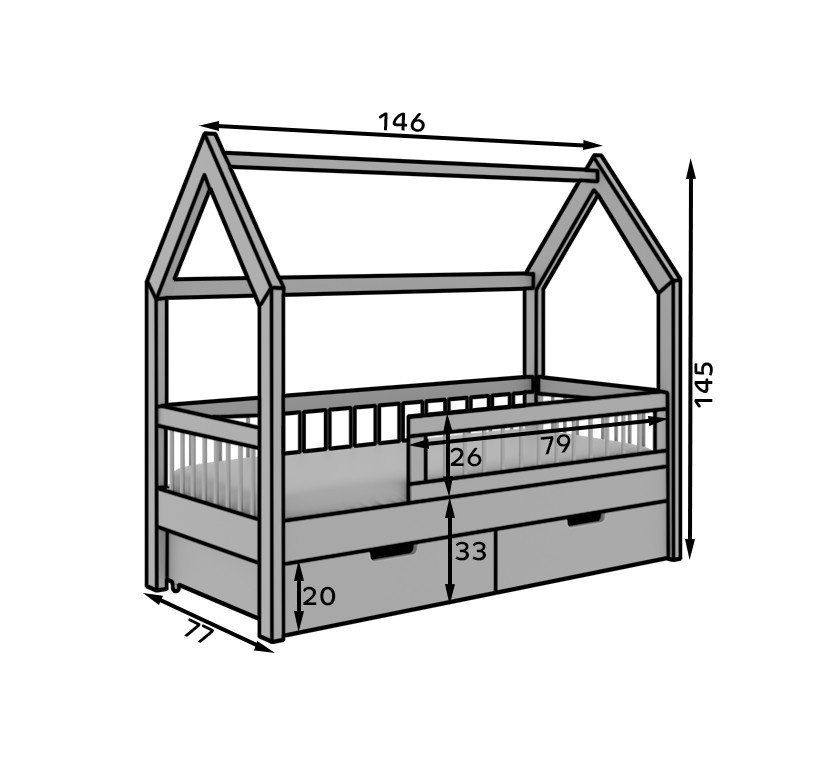 Postel domek Galicja je výjimečný nábytek, který spojuje funkčnost a design inspirovaný útulnou, skandinávskou estetikou. Vyrobeno z masivního dřeva, postel zajišťuje stabilitu a trvanlivost, zároveň dodává interiéru teplý, přírodní půvab. Jeho konstrukce ve tvaru domečku podněcuje dětskou představivost a vytváří útulné místo pro hraní a odpočinek. Ideálně se hodí jako centrální prvek dětského pokoje, zajišťující pohodlný spánek a inspirující ke kreativní hře. Jednoduchá forma a přirozené provedení způsobují, že postel Galicja se harmonicky začlení do každého interiéru, bez ohledu na styl uspořádání.