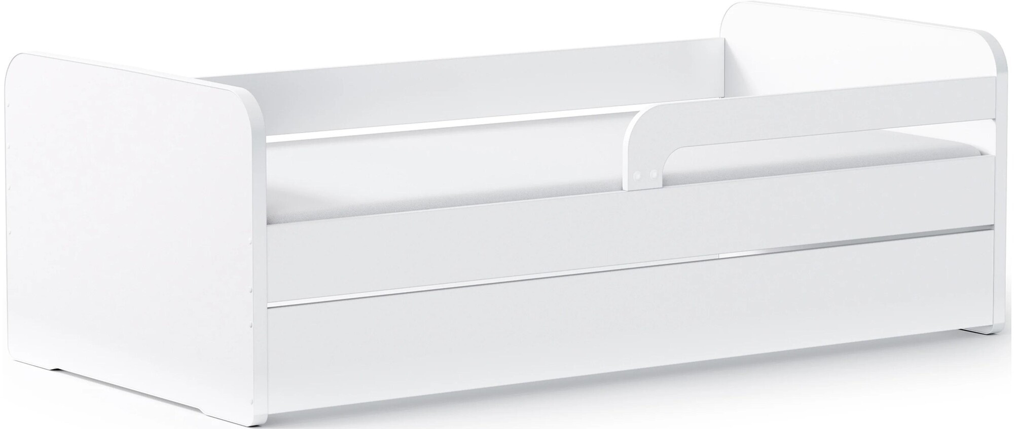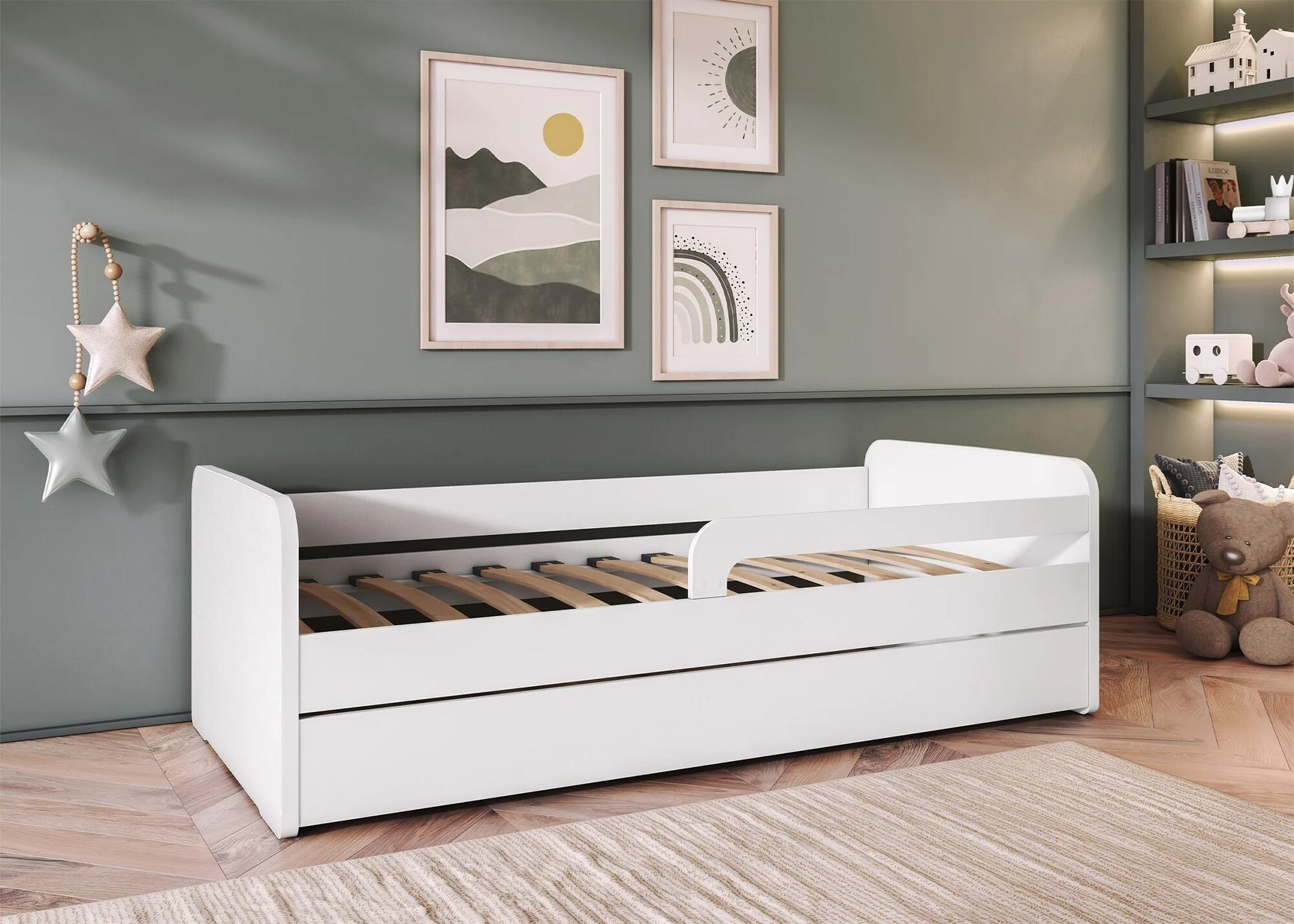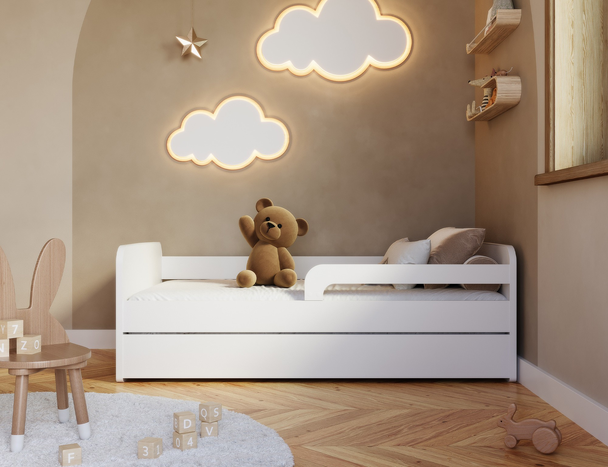 Dětská postel Duuli je moderní kus nábytku s univerzálním designem, který se dokonale hodí do interiéru každého dětského pokoje. Robustní rám v klasické bílé barvě dodává lehkost a eleganci, čímž zdůrazňuje jeho nadčasový charakter. Postel je vybavena bezpečnostní zábranou, která zajišťuje úplnou bezpečnost během spánku a chrání dítě před náhodným pádem. Dostupné ve dvou variantách – s matrací nebo bez matrace – umožňuje přizpůsobení individuálním potřebám. Absence ložního kontejneru činí konstrukci lehkou, jednoduchou a dokonale vhodnou pro minimalistický, moderní styl. Postel Duuli kombinuje estetiku, funkčnost a bezpečnost, což z ní činí ideální řešení pro pohodlný odpočinek vašeho dítěte.