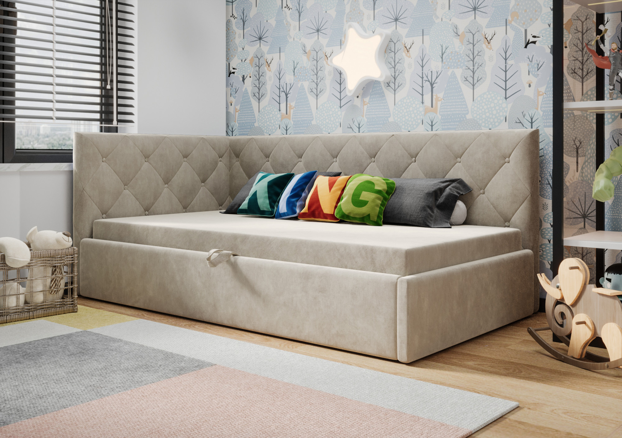 Čalouněná postel ELZA je naše nabídka jednolůžkového modelu. Vytvořen s ohledem na nejmladší - skvěle se hodí také do pokoje pro mládež, hotelového pokoje nebo penzionu. Široký výběr tkanin a barev umožní přizpůsobit nábytek interiéru, který zařizujete. Již dnes se postarejte o spánek svého dítěte s značkou Meble Górecki.