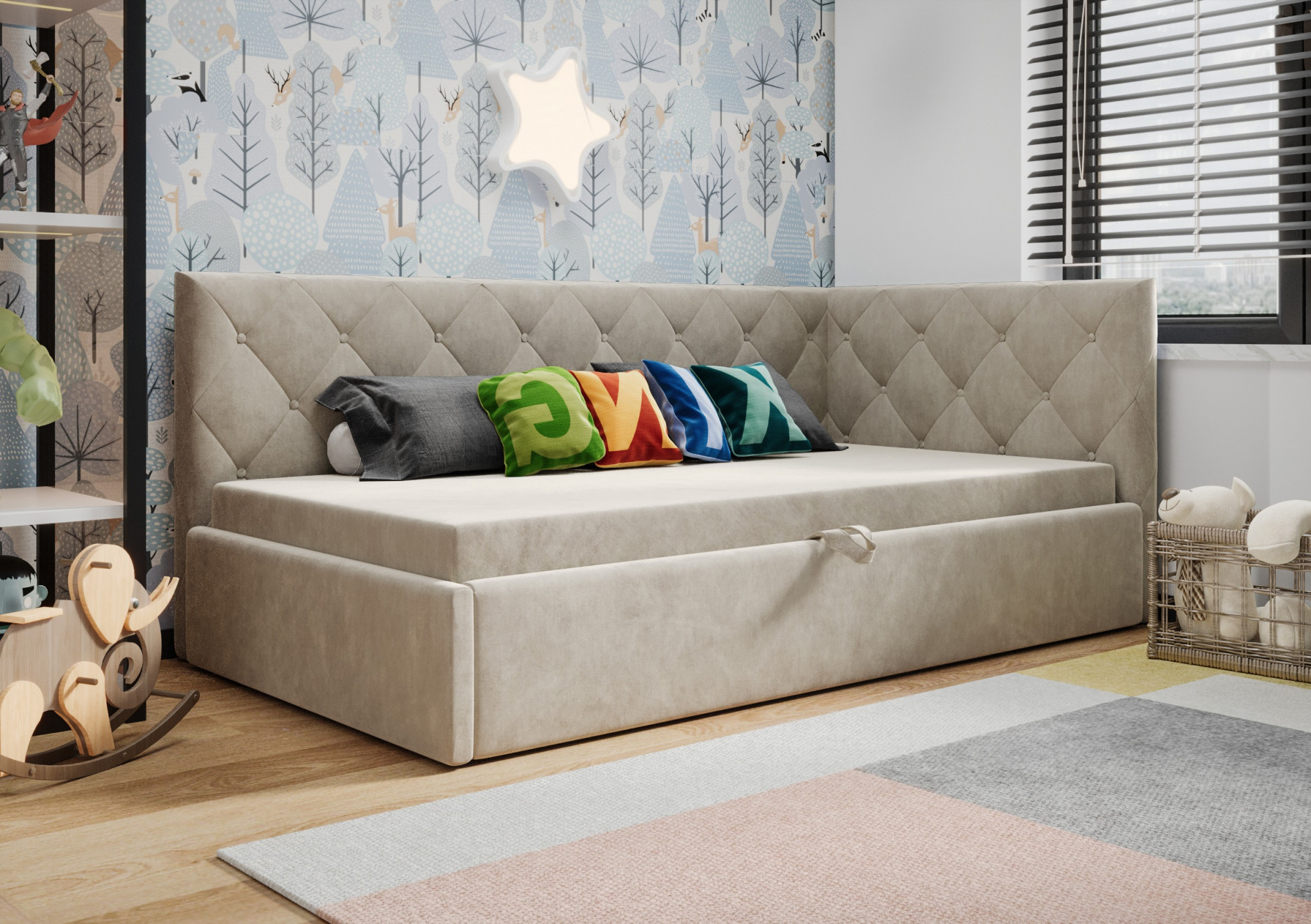 Čalouněná postel ELZA je naše nabídka jednolůžkového modelu. Vytvořen s ohledem na nejmladší - skvěle se hodí také do pokoje pro mládež, hotelového pokoje nebo penzionu. Široký výběr tkanin a barev umožní přizpůsobit nábytek interiéru, který zařizujete. Již dnes se postarejte o spánek svého dítěte s značkou Meble Górecki.