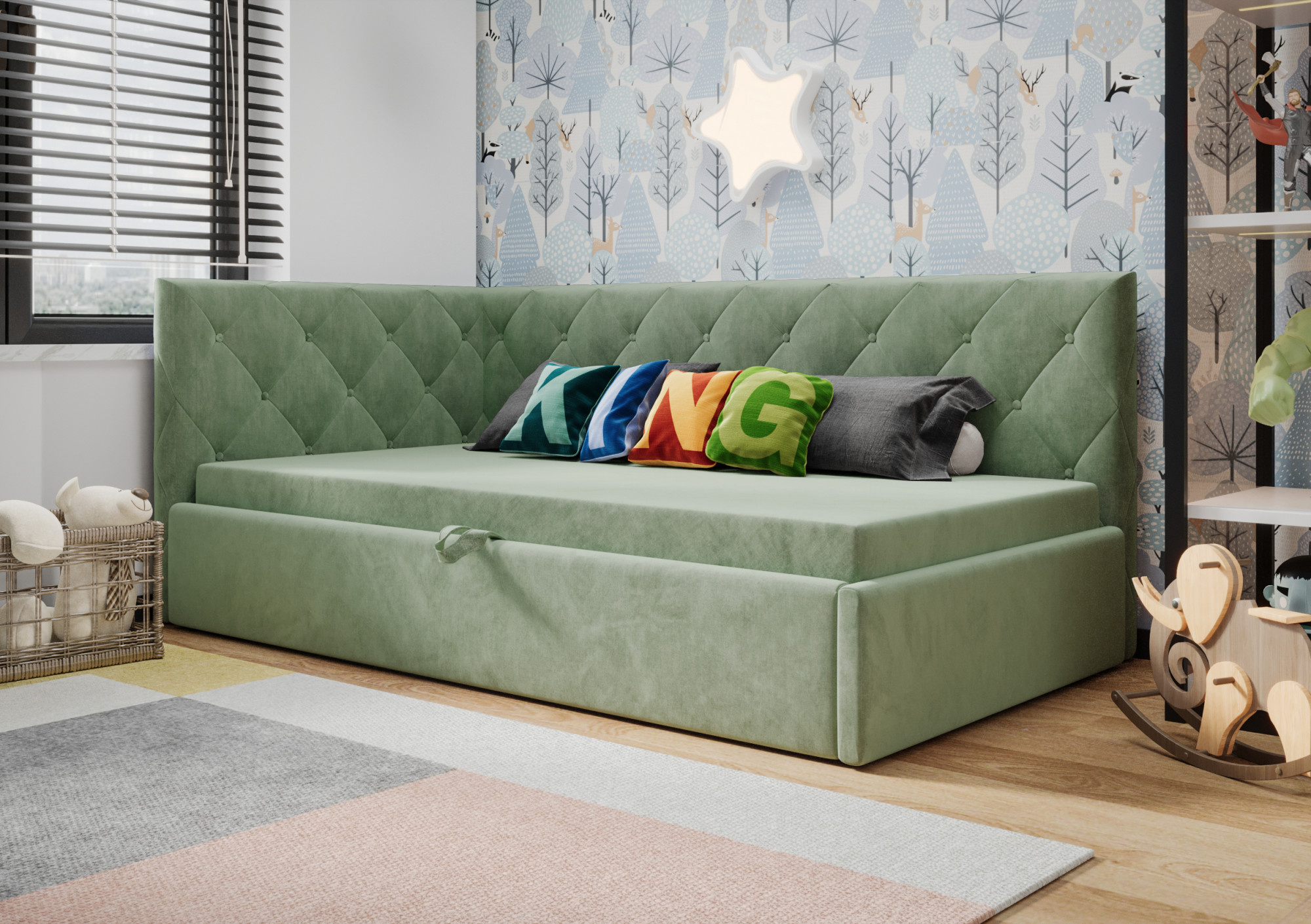 Čalouněná postel ELZA je naše nabídka jednolůžkového modelu. Vytvořen s ohledem na nejmladší - skvěle se hodí také do pokoje pro mládež, hotelového pokoje nebo penzionu. Široký výběr tkanin a barev umožní přizpůsobit nábytek interiéru, který zařizujete. Již dnes se postarejte o spánek svého dítěte s značkou Meble Górecki.